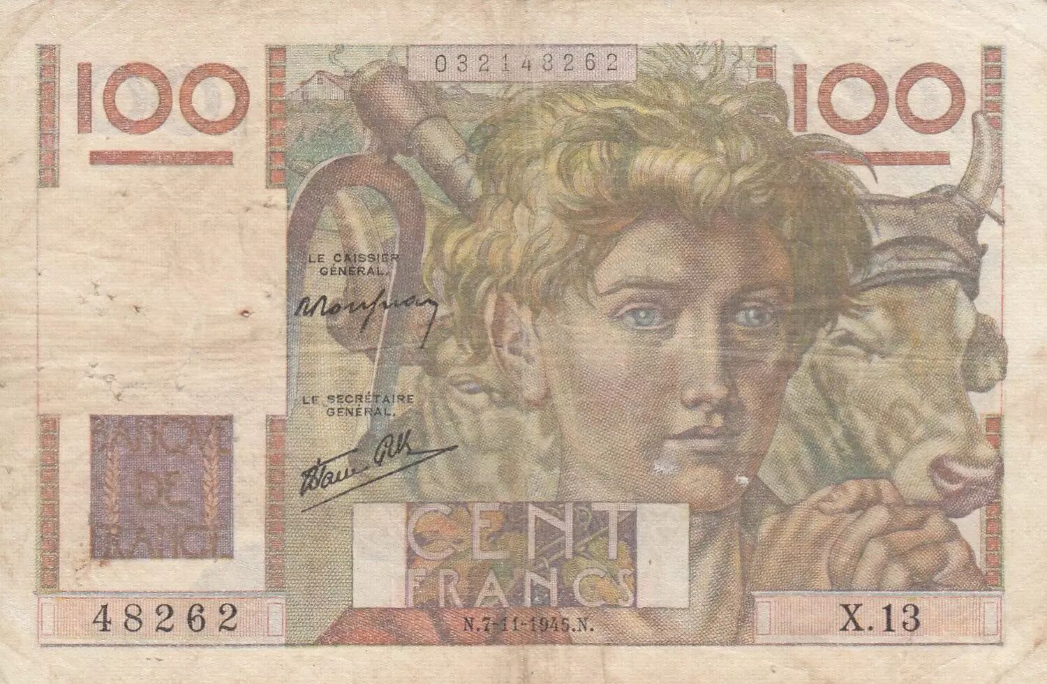 Billet France 100 Francs - Jeune Paysan - 07-11-1945 - Série X.13