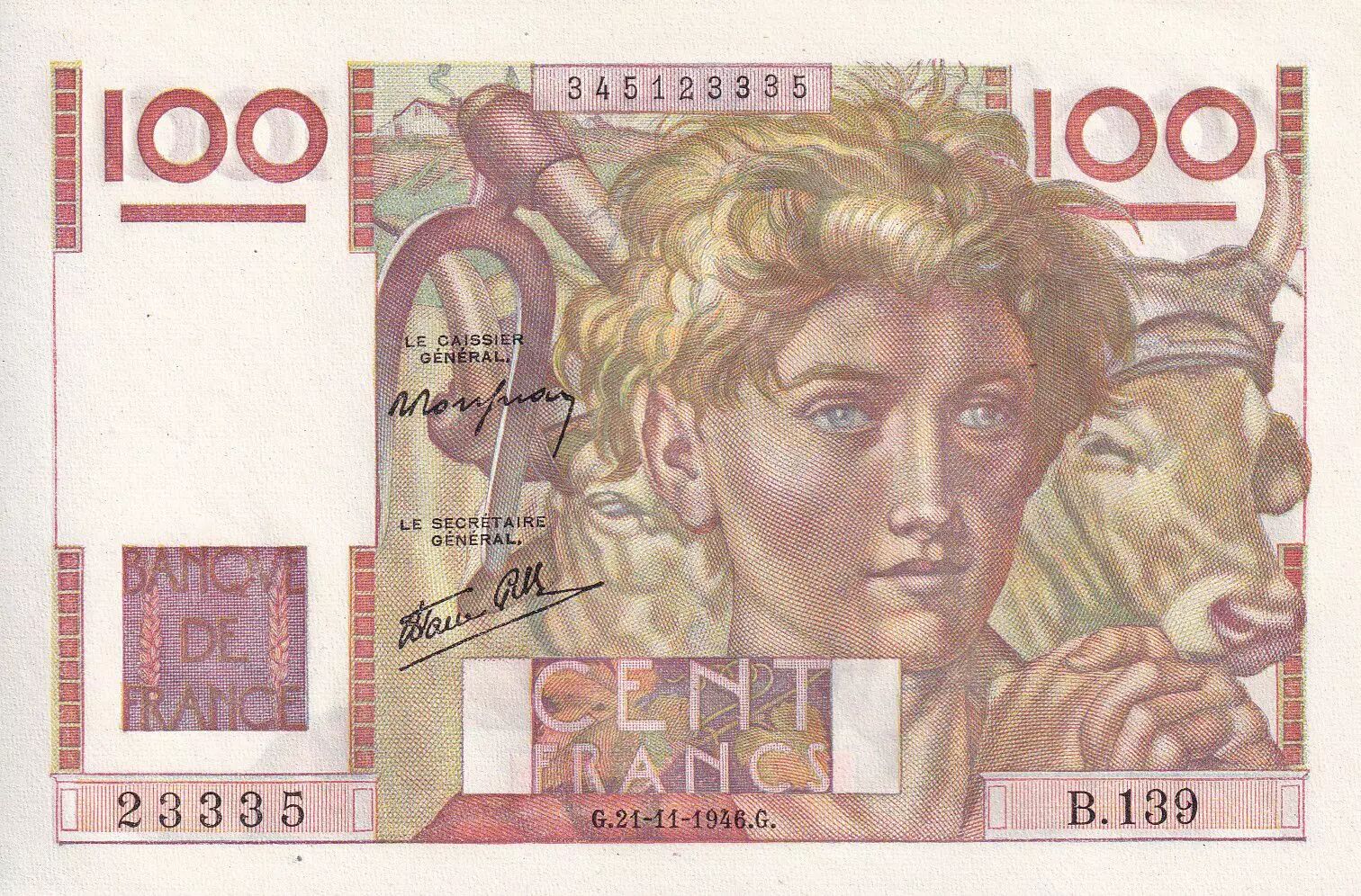 Home > > France 100 Francs - Jeune Paysan - 21-11-1946 - Serial B.139 - P.128