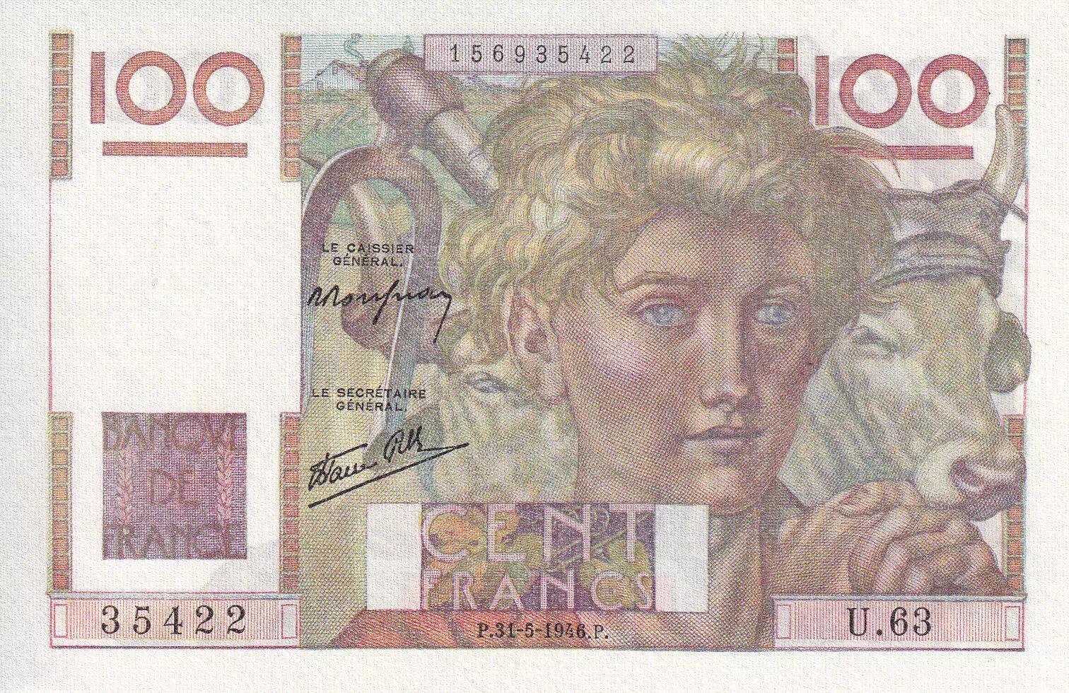 Home > > France 100 Francs - Jeune Paysan - 31-05-1946 - Serial U.63 - P.128
