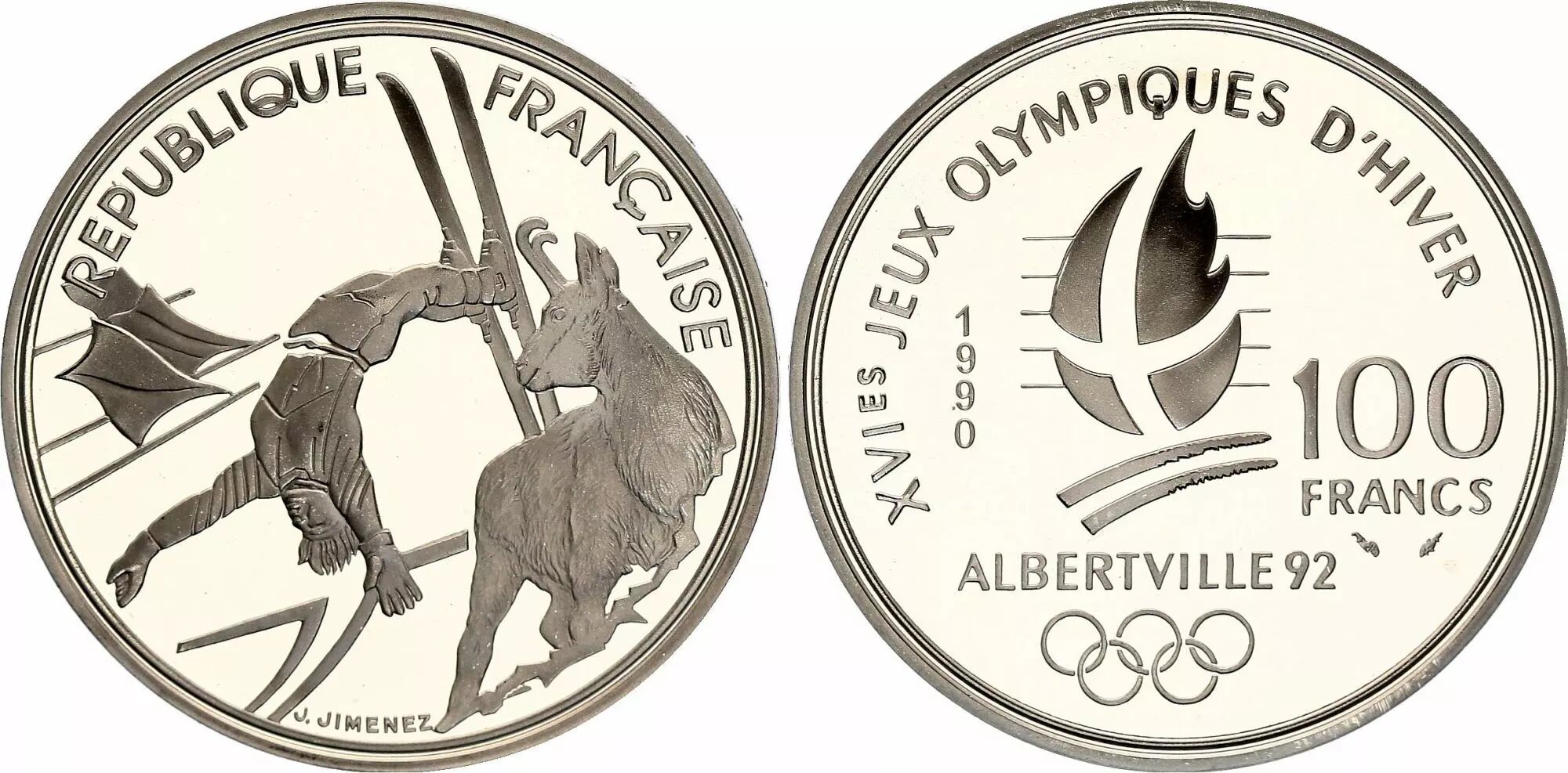 Coin France 100 Francs JO Albertville - Acrobatic Skiing - 1990 - Proof with certificate