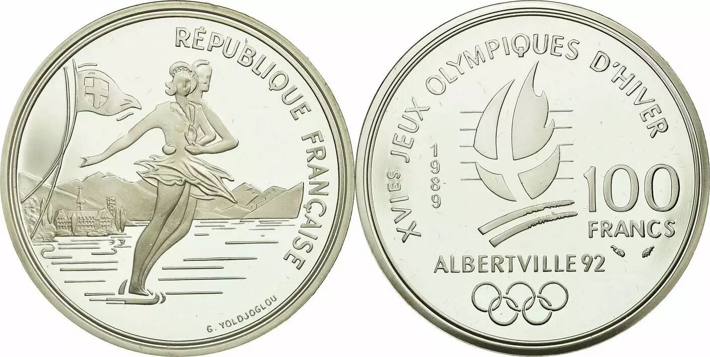 Pièce France 100 Francs JO Albertville - Patinage Artistique - 1989 - Frappe BE - avec certificat