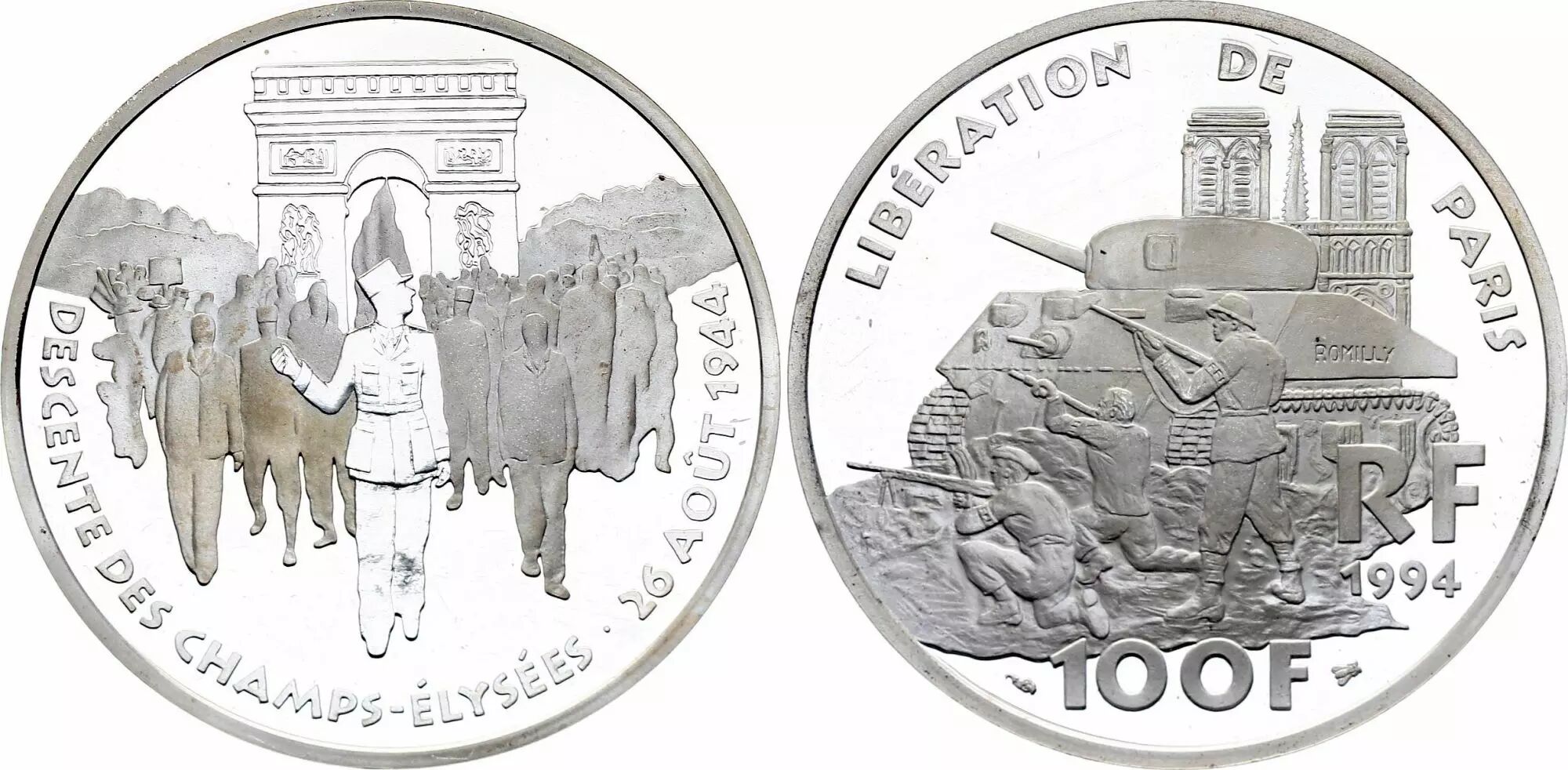 Coin France 100 Francs Liberation of Paris - 1994 - Proof - Silver - without boxe and without certificate