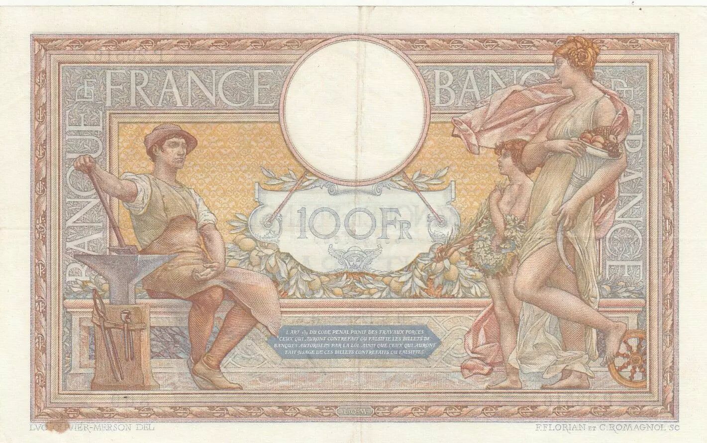 Accueil > Billets Français > Billets Banque de France > Billets 100 Francs > Luc Oliver Merson type 1906 (1908-1939) > France 100 Francs LOM - Grands cartouches - 05-12-1928 - Série P.23516