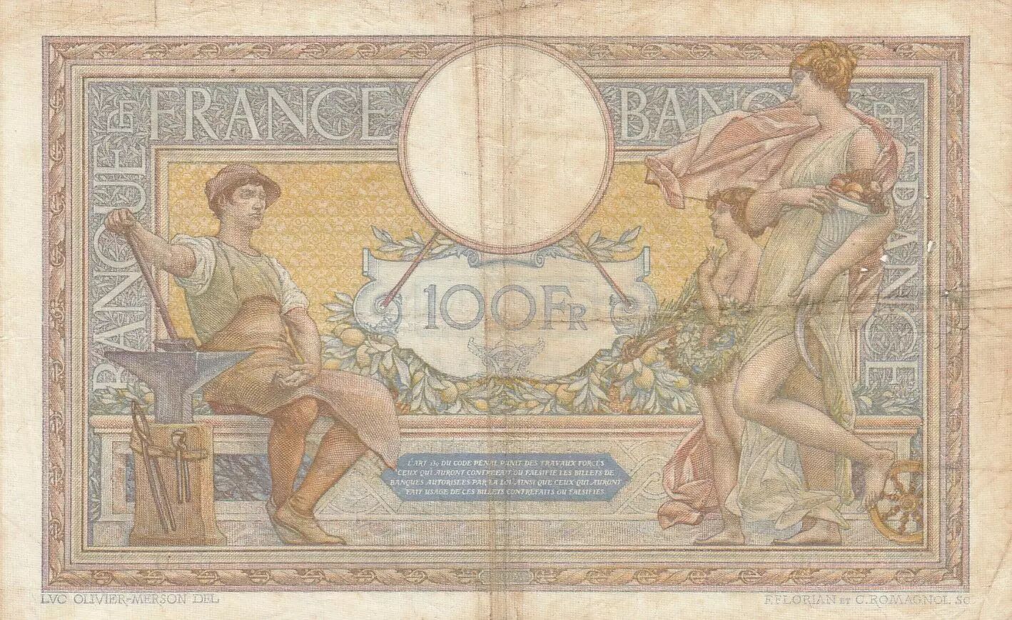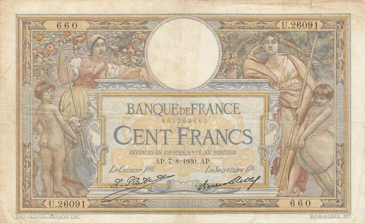 Accueil > Archivage > archivage-Billets Français > France 100 Francs LOM - Grands cartouches - 07-08-1930 - Série U.26091