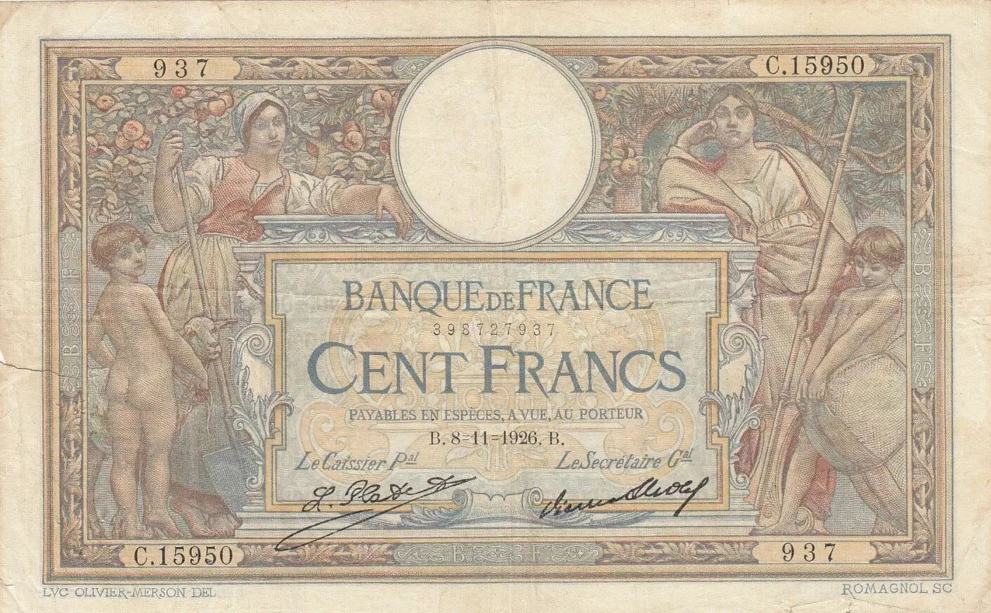 Billet France 100 Francs LOM - Grands cartouches - 08-11-1926 - Série C.15950