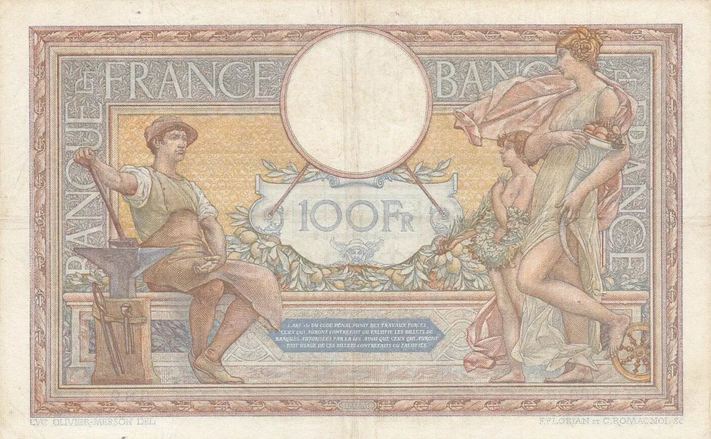 Accueil > Billets Français > Billets Banque de France > Billets 100 Francs > Luc Oliver Merson type 1906 (1908-1939) > France 100 Francs LOM - Grands cartouches - 15-09-1932 - Série R.36936
