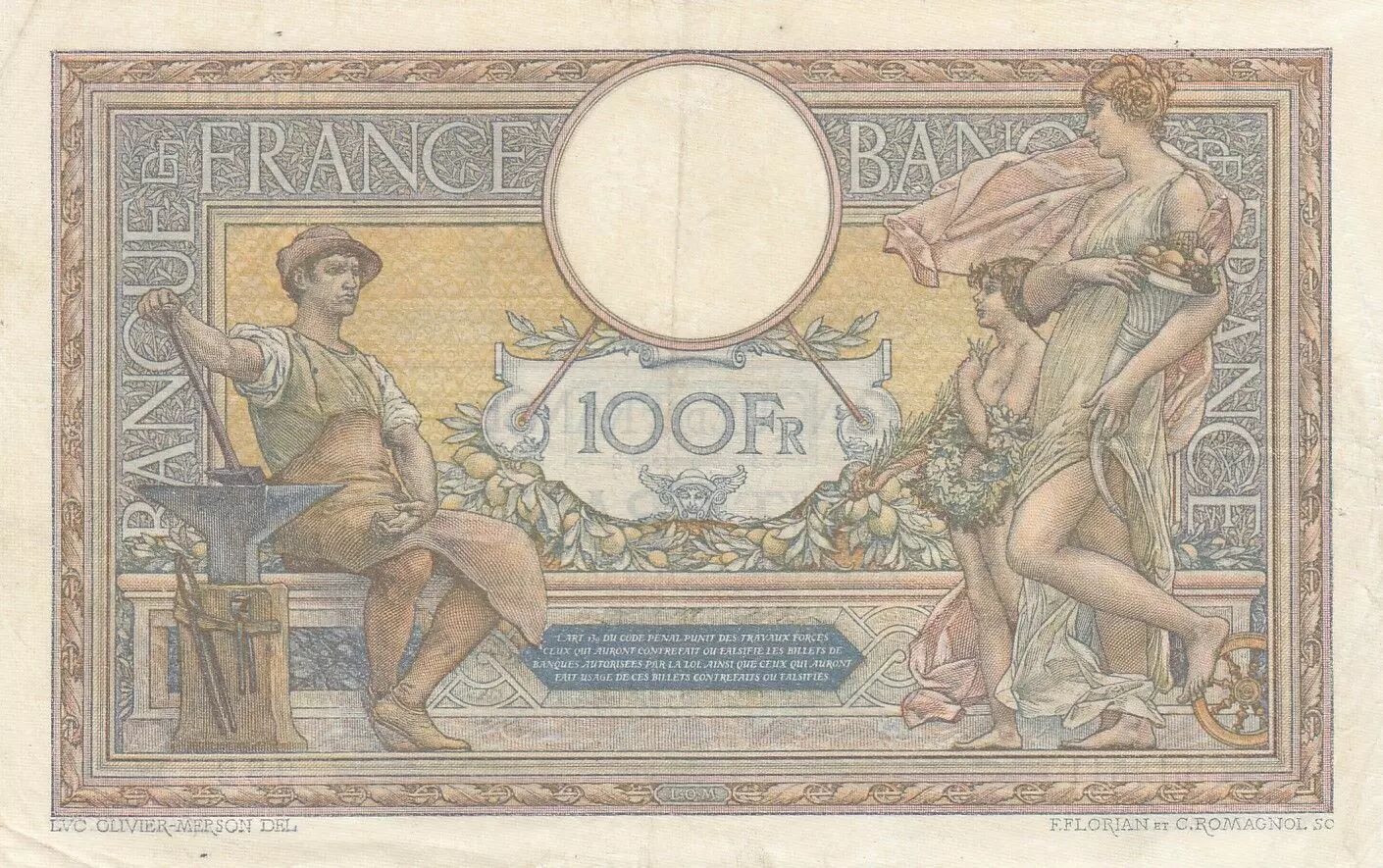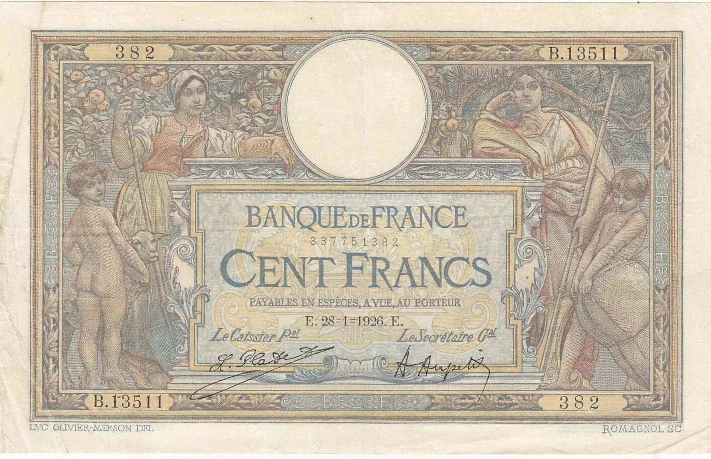 Accueil > Billets Français > Billets Banque de France > Billets 100 Francs > Luc Oliver Merson type 1906 (1908-1939) > France 100 Francs LOM - Grands cartouches - 28-01-1926 - Série B.13511