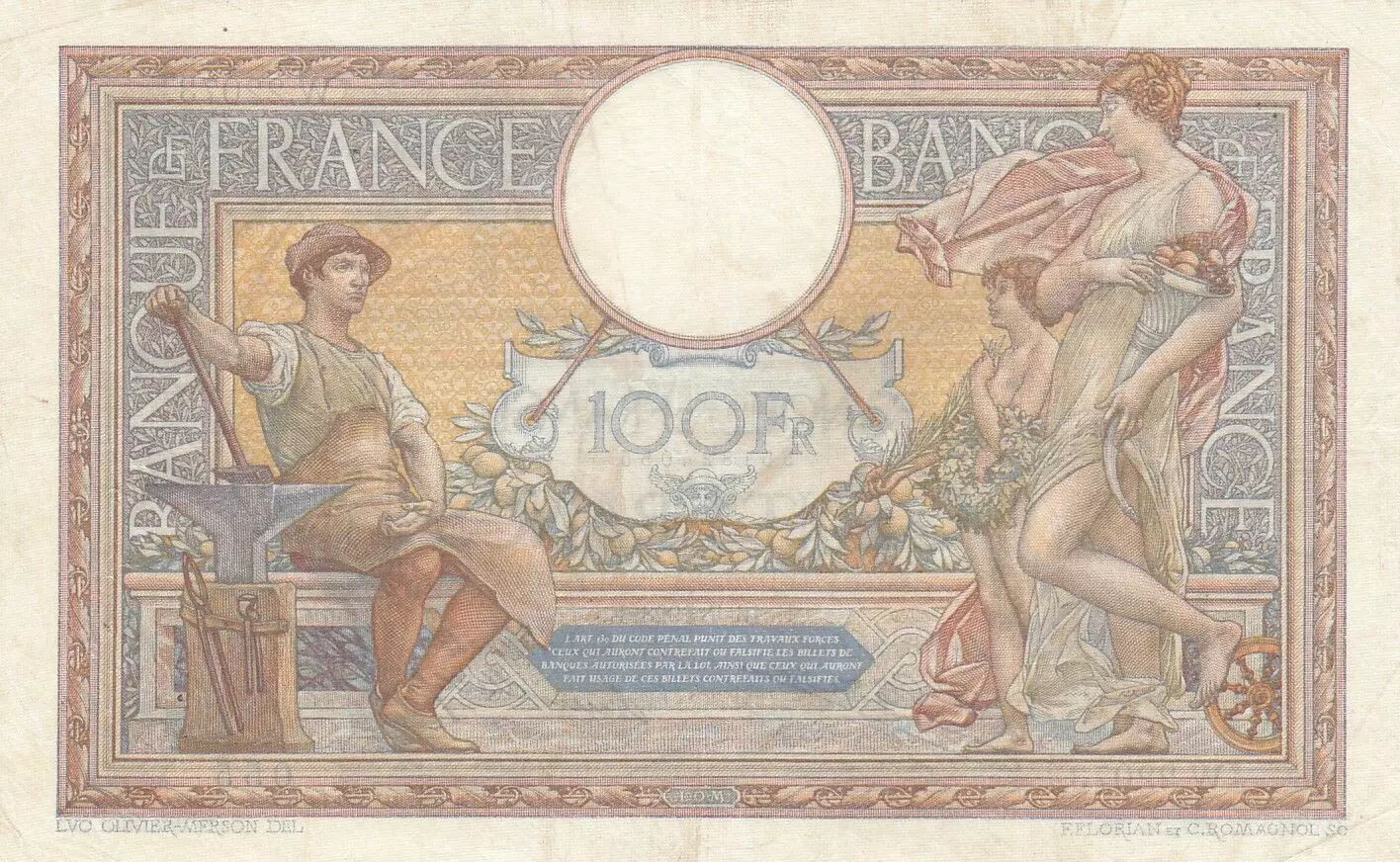 Banknote France 100 Francs LOM - large cartridges - 16-07-1928 - Serial W.22073