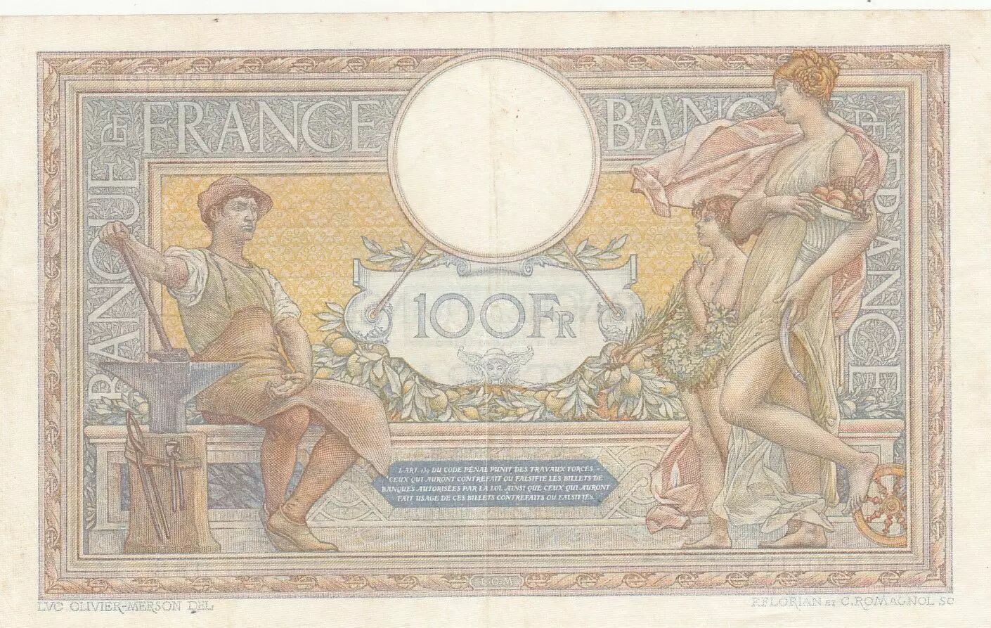 Home > French Banknotes > Bank of France Banknotes > 100 Francs Banknotes > Luc Olivier Merson Type 1906 (1908-1939) > France 100 Francs LOM - large cartridges - 29-02-1928 - Serial M.20712