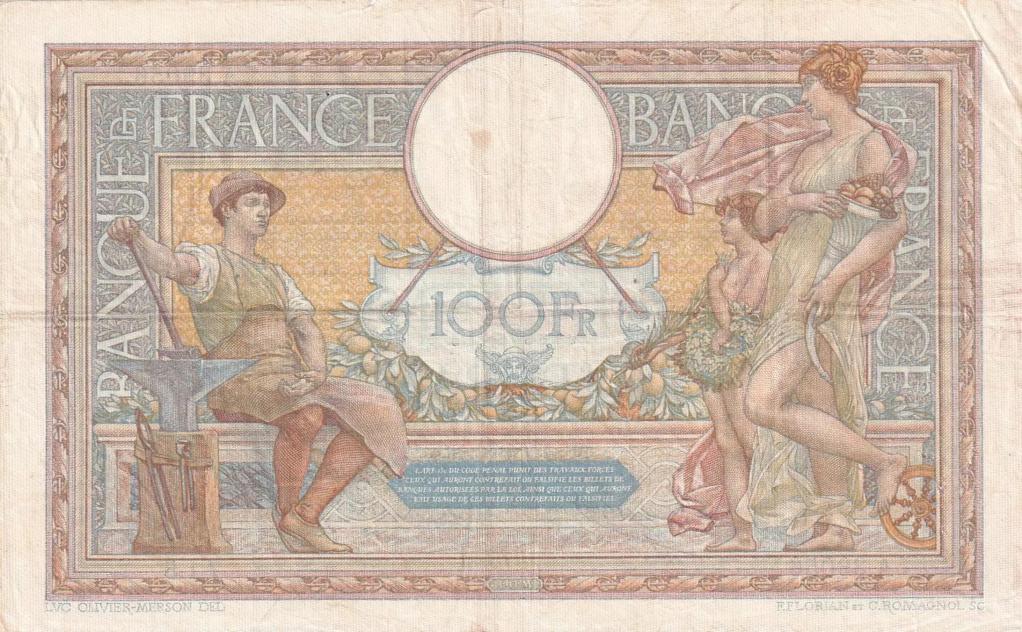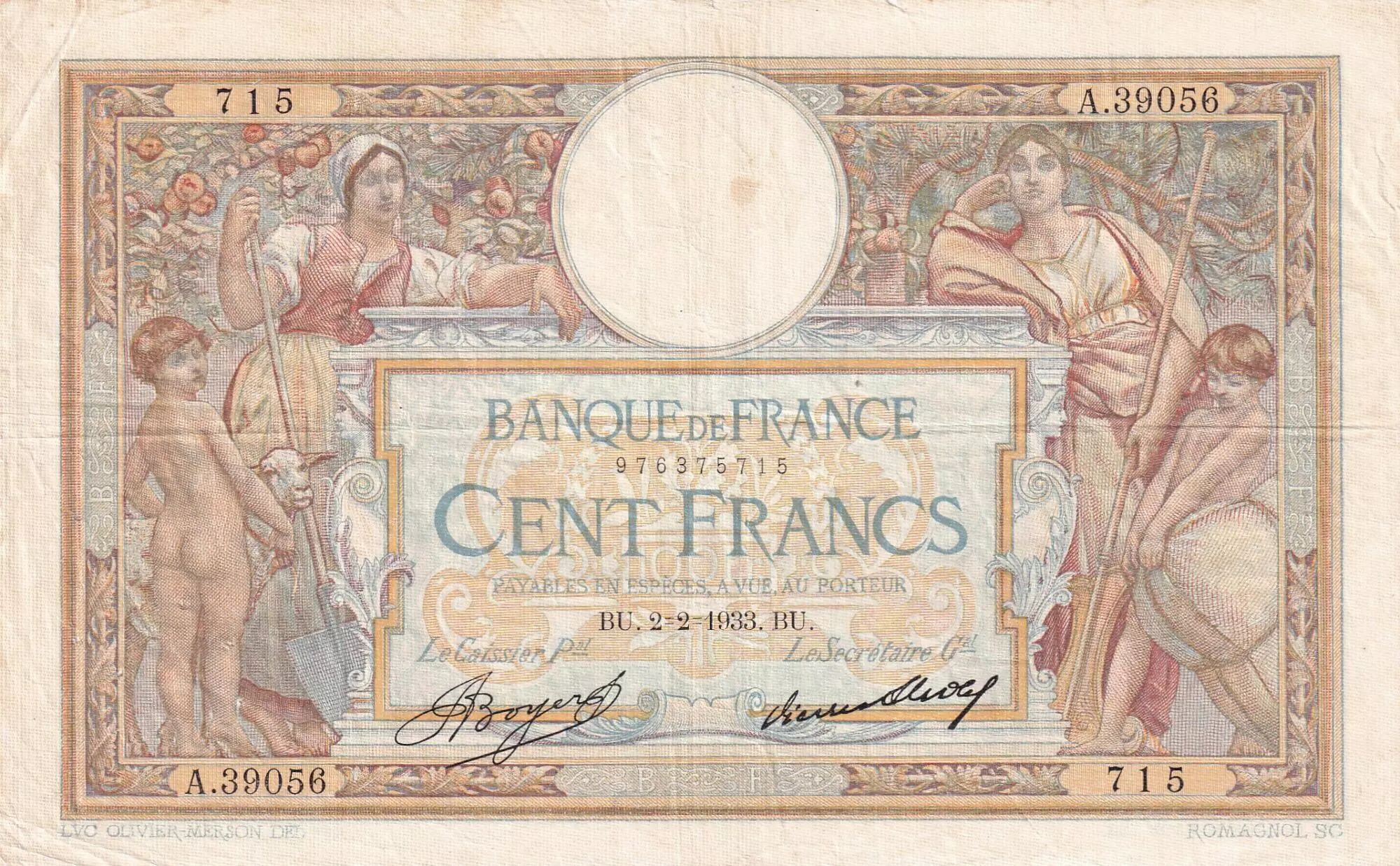 Banknote France 100 Francs Luc Olivier Merson - 02-02-1933 - Serial A.39056