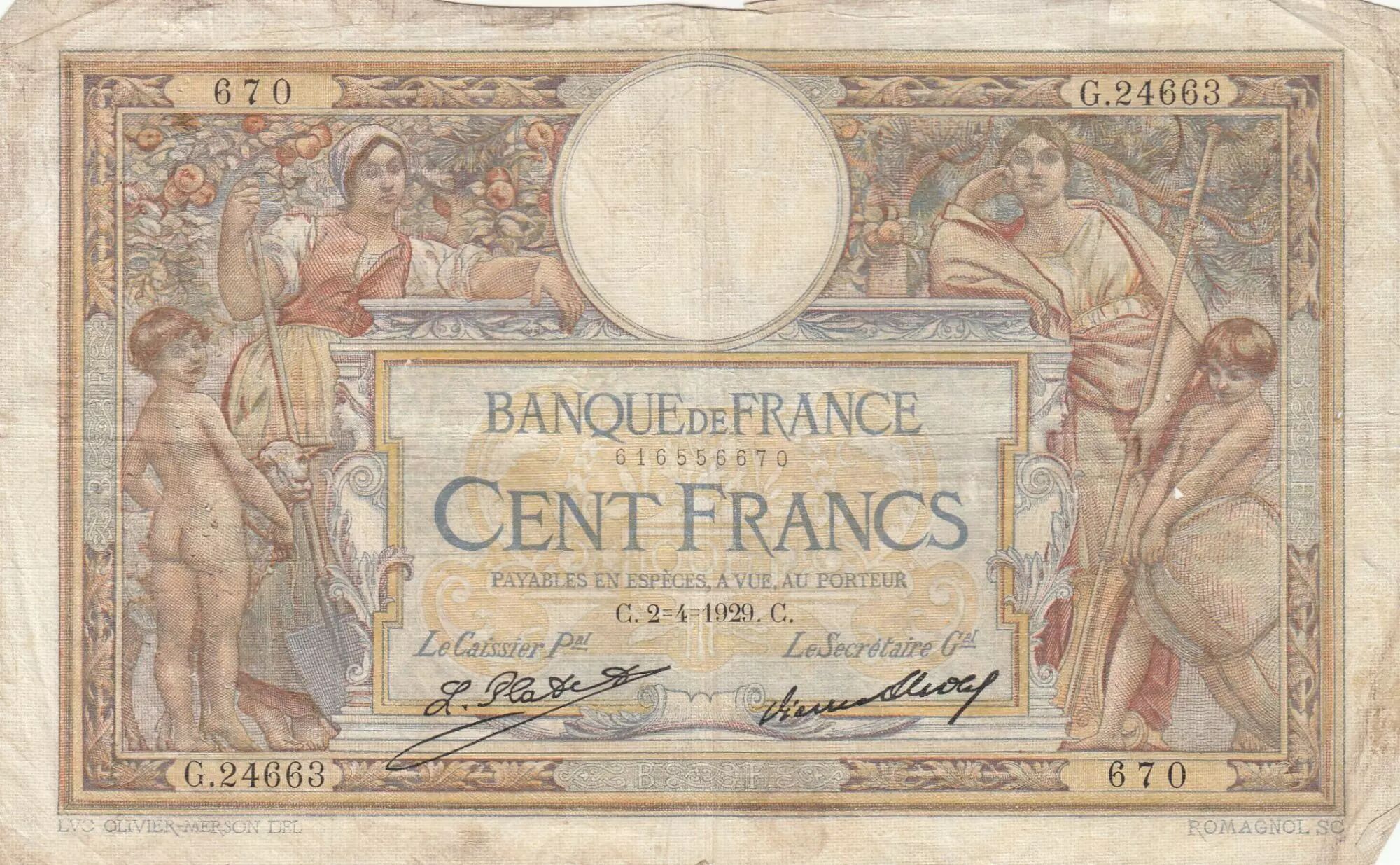 Billet France 100 Francs - Luc Olivier Merson - 02-04-1929 - Série G.24663