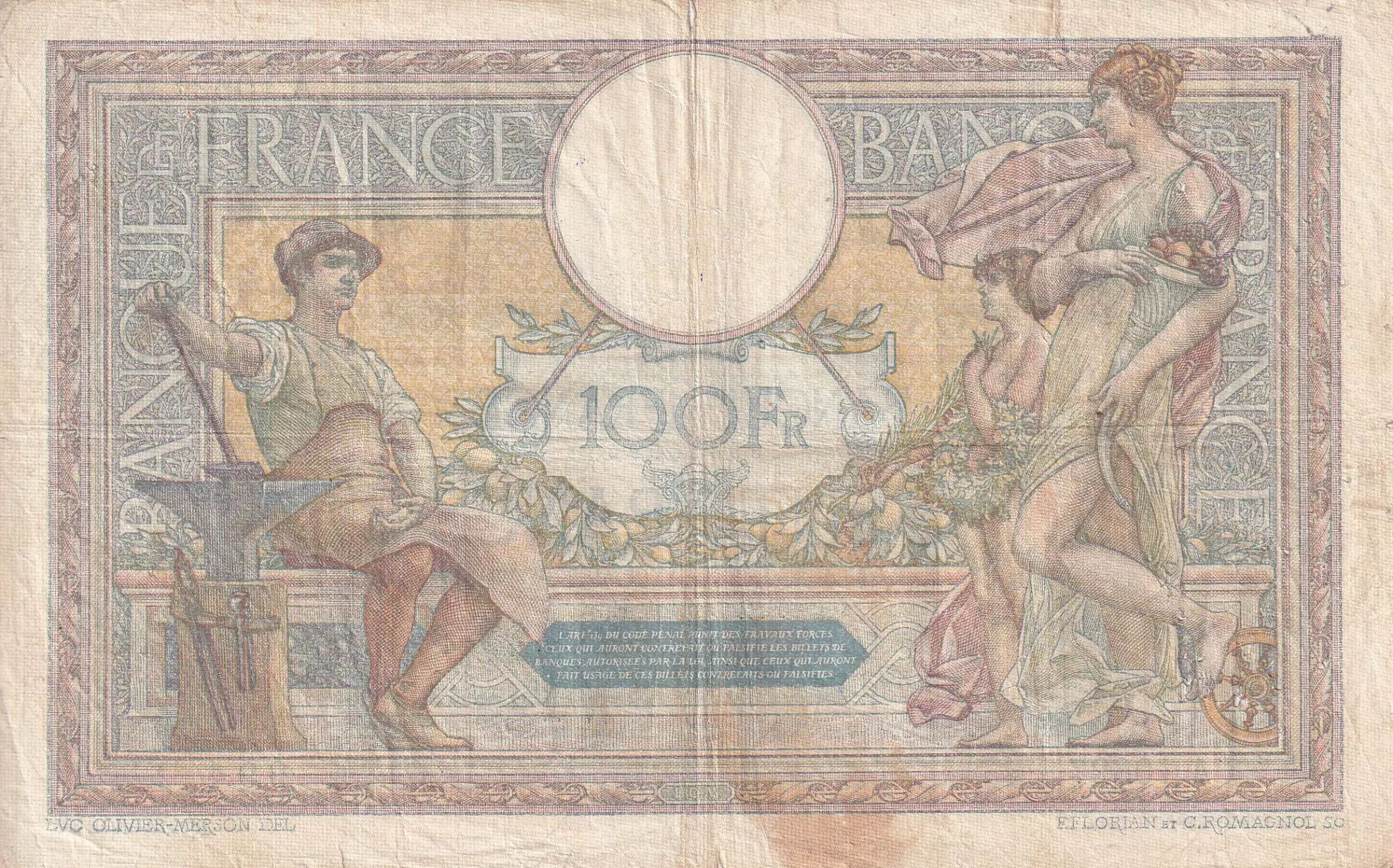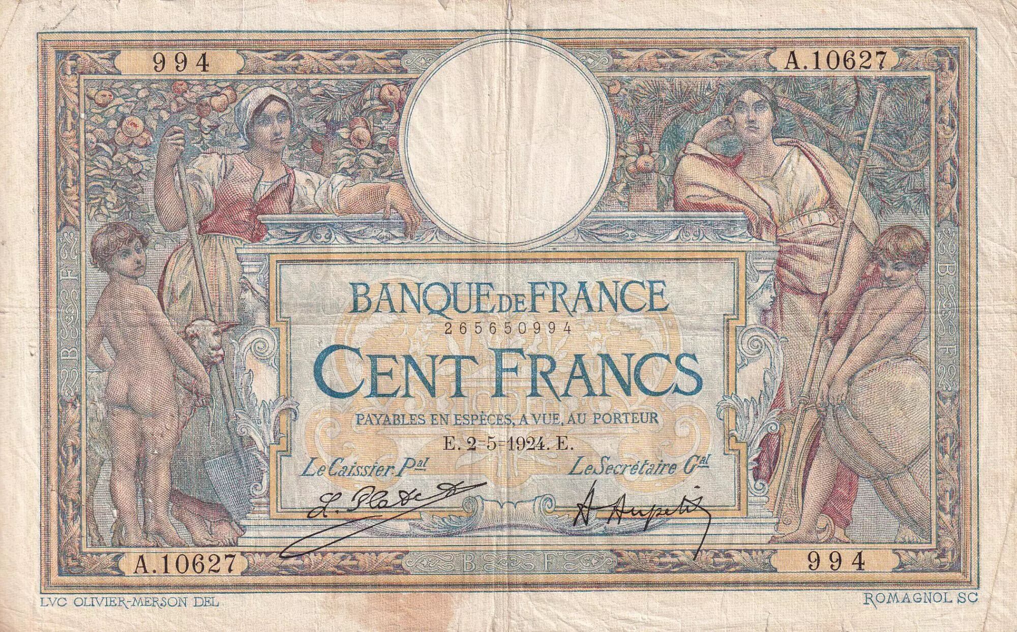 Accueil > Archivage > France 100 Francs - Luc Olivier Merson - 02-05-1924 - Série A.10627 - TB - F.24.02