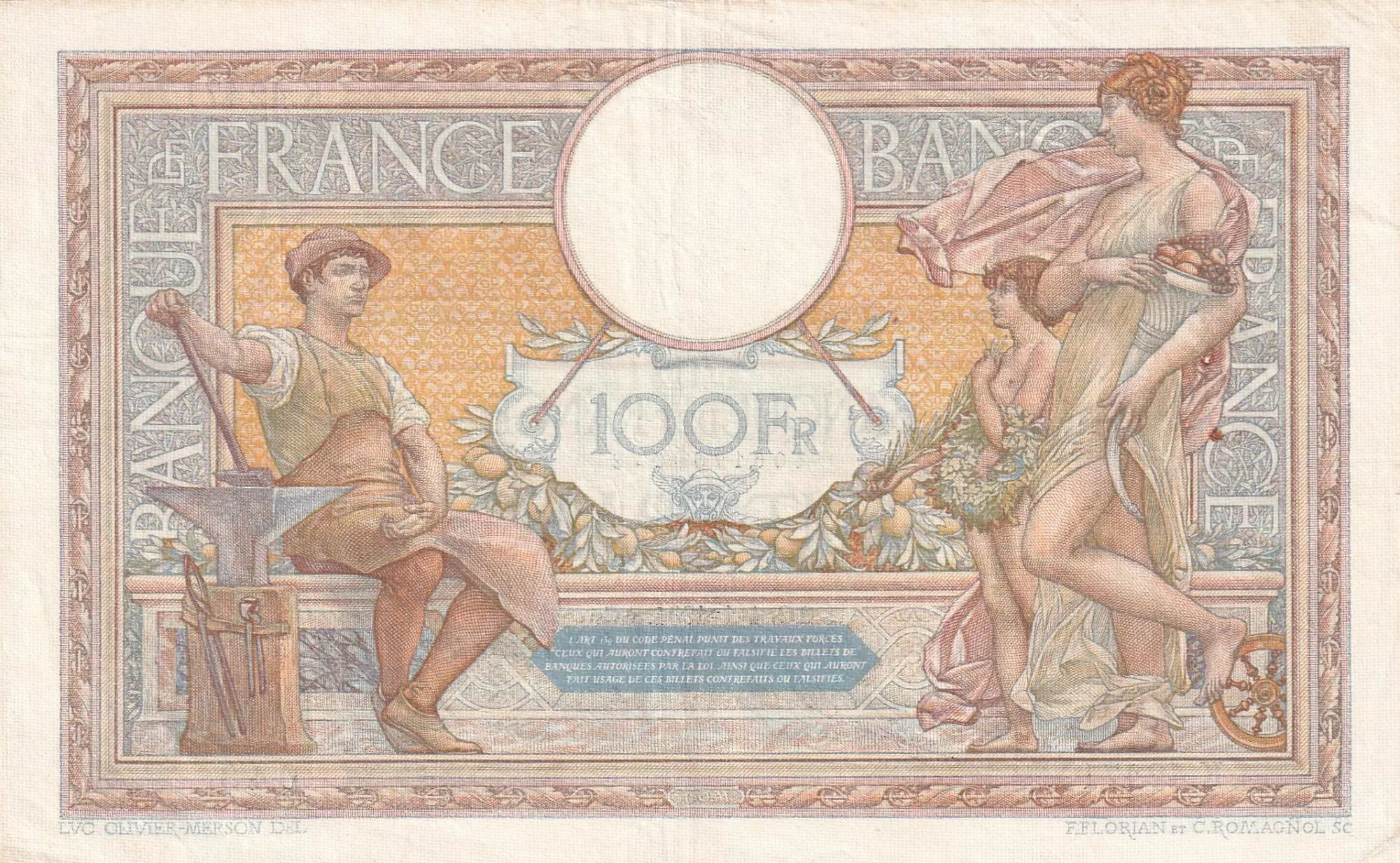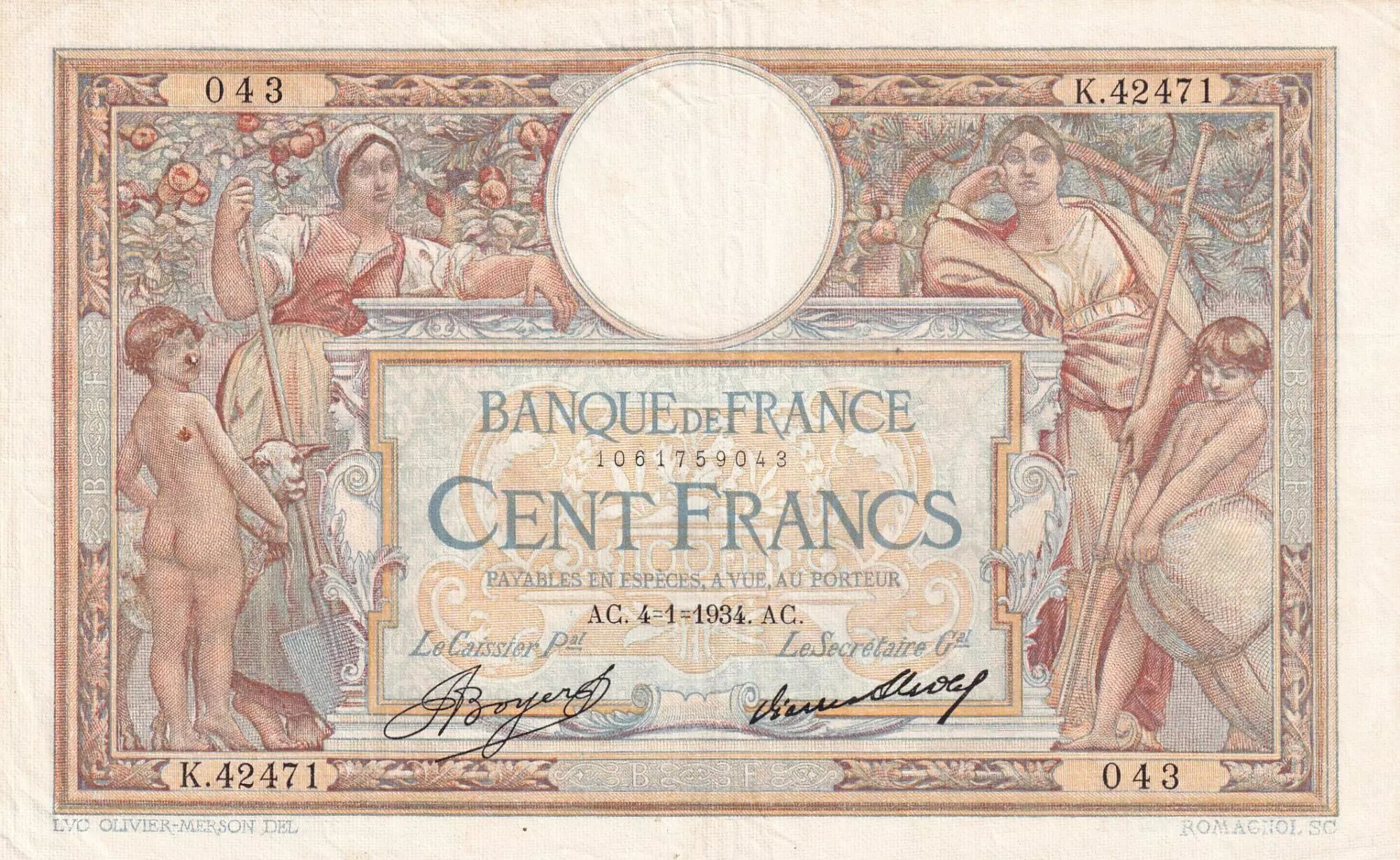 Banknote France 100 Francs - Luc Olivier Merson - 04-01-1934 - Serial K.42471