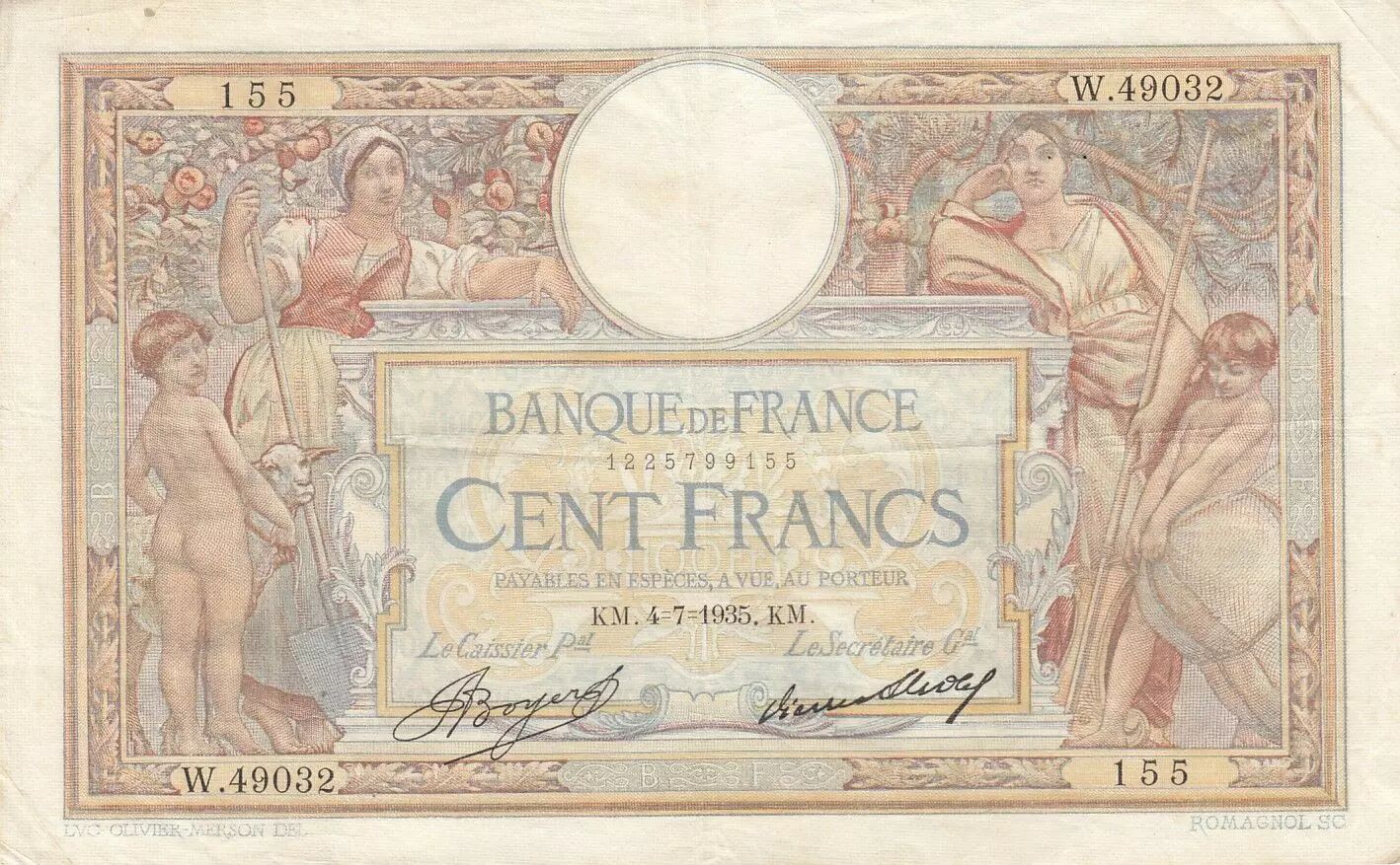 Billet France 100 Francs - Luc Olivier Merson - 04-07-1935 - Série W.49032