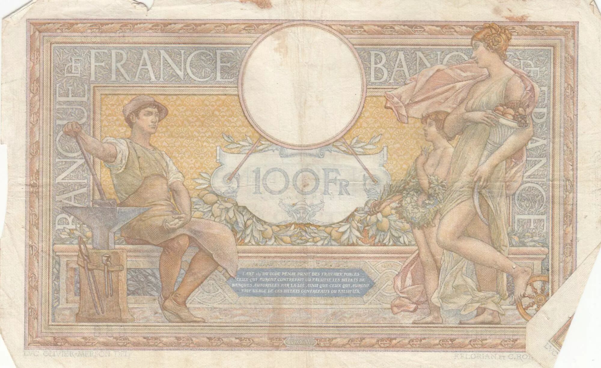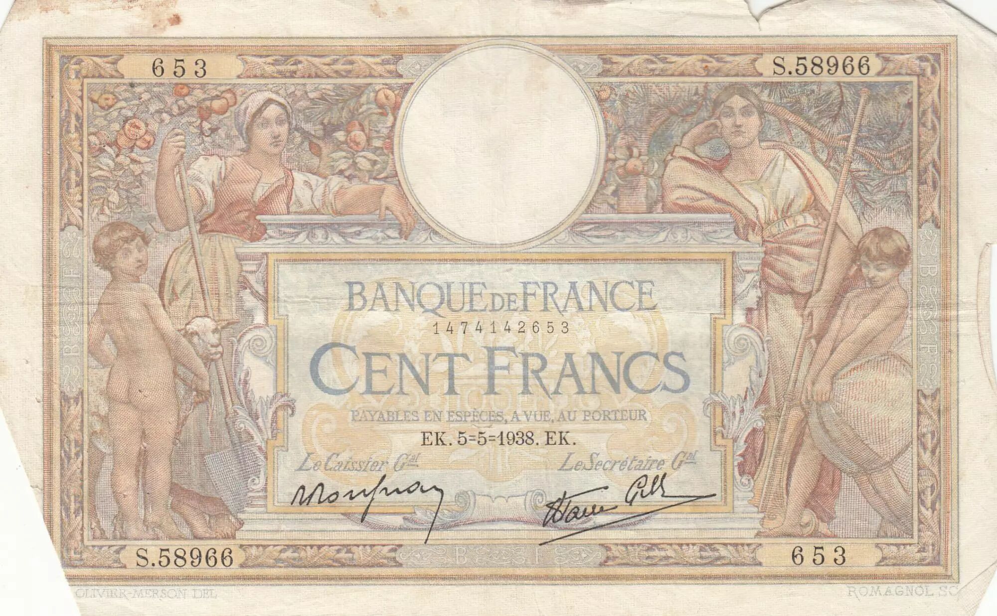 Accueil > Archivage > archivage-Billets Français > France 100 Francs - Luc Olivier Merson - 05-05-1938 - Série S.58966
