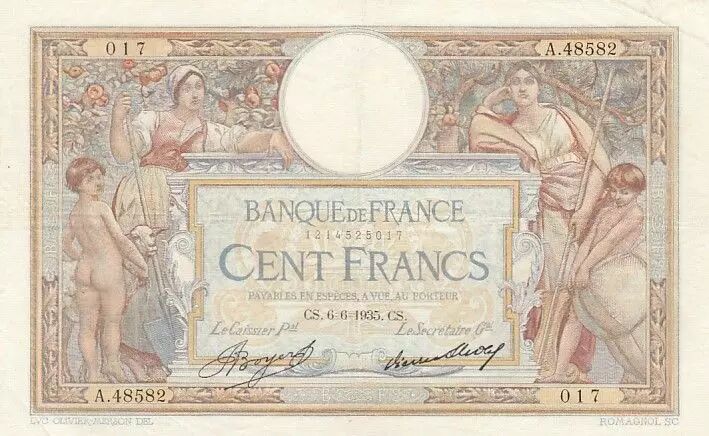 Billet France 100 Francs - Luc Olivier Merson - 06-06-1935 - Série A.48582