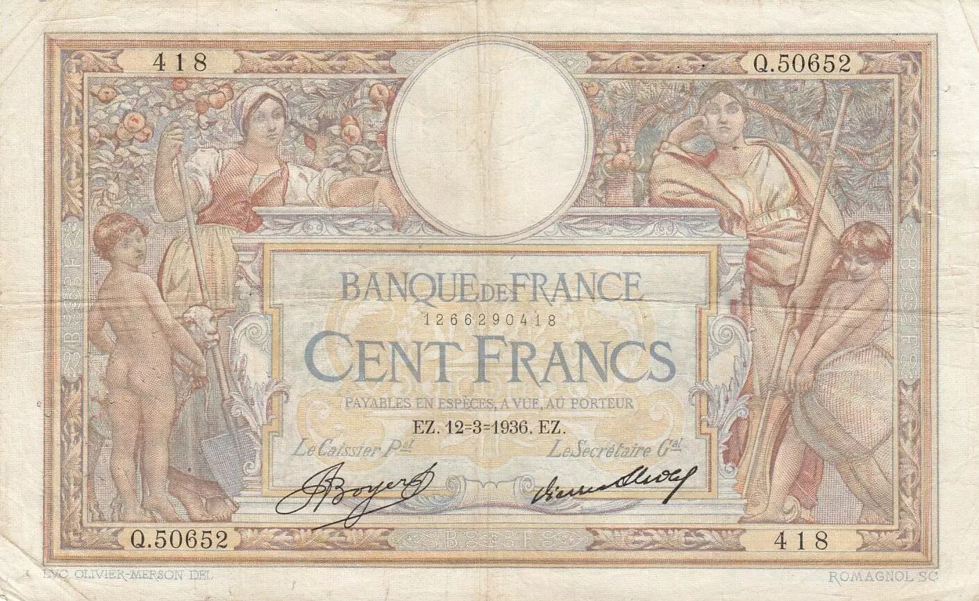 Billet France 100 francs - Luc Olivier Merson - 06-08-1936 - Série Q.50652