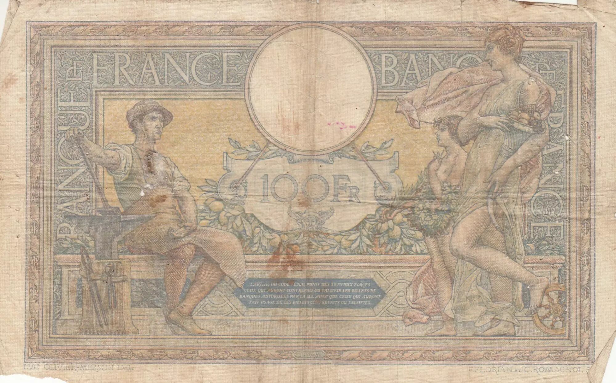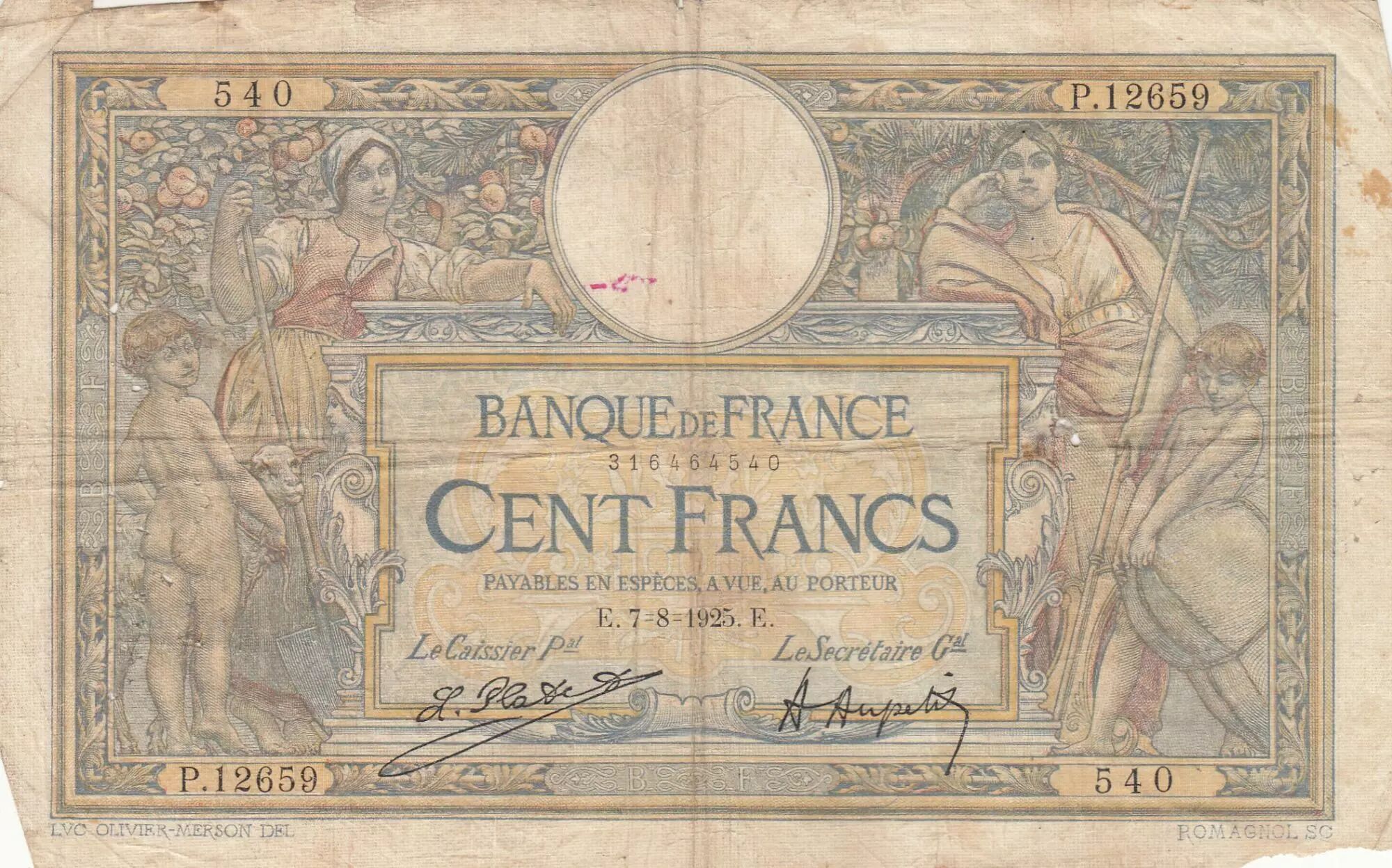 Home > > France 100 Francs - Luc Olivier Merson - 07-08-1925 - Serial P.12659