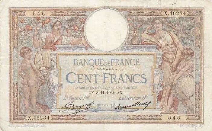 Billet France 100 Francs Luc Olivier Merson - 08-11-1934 - Série X.46234