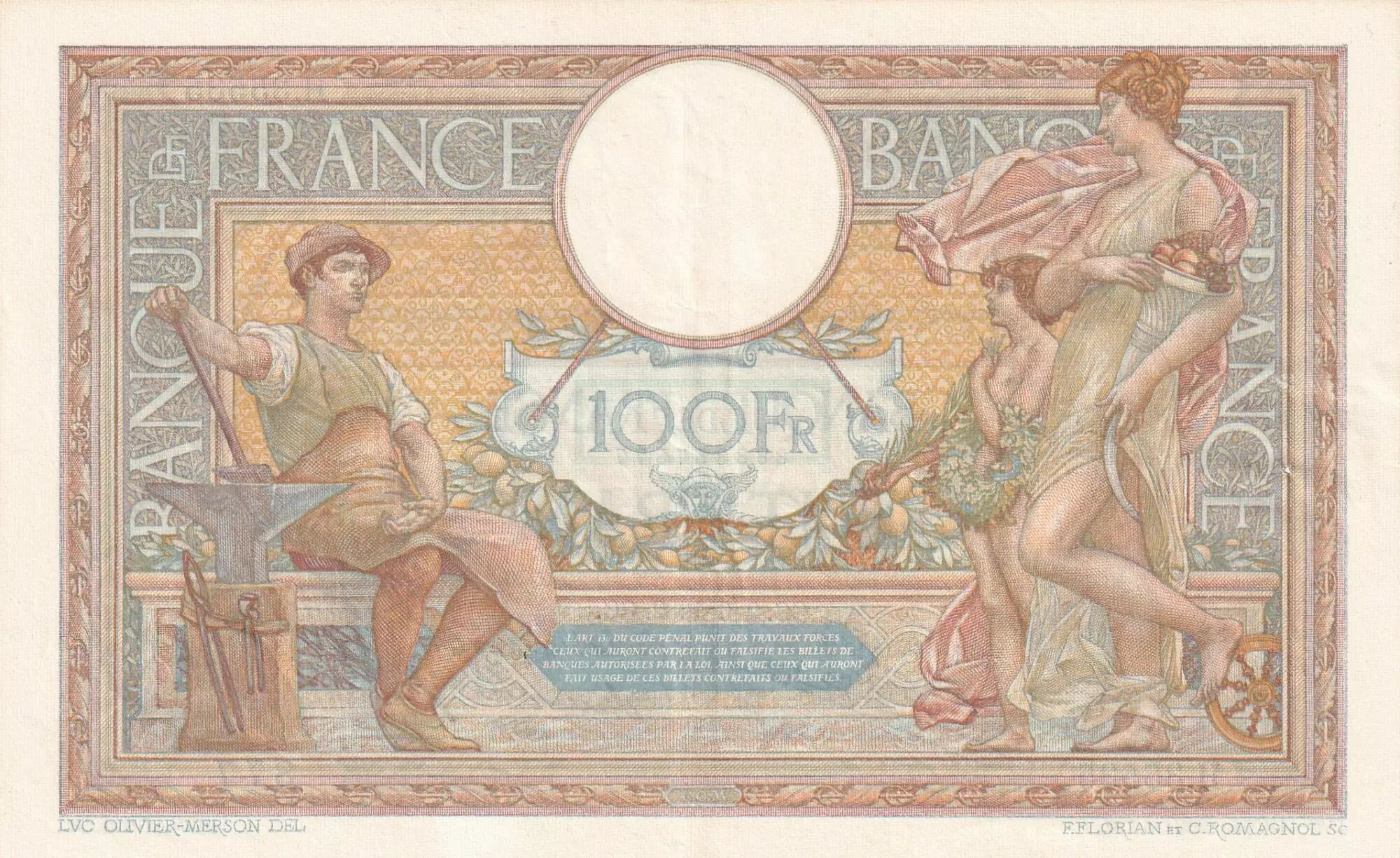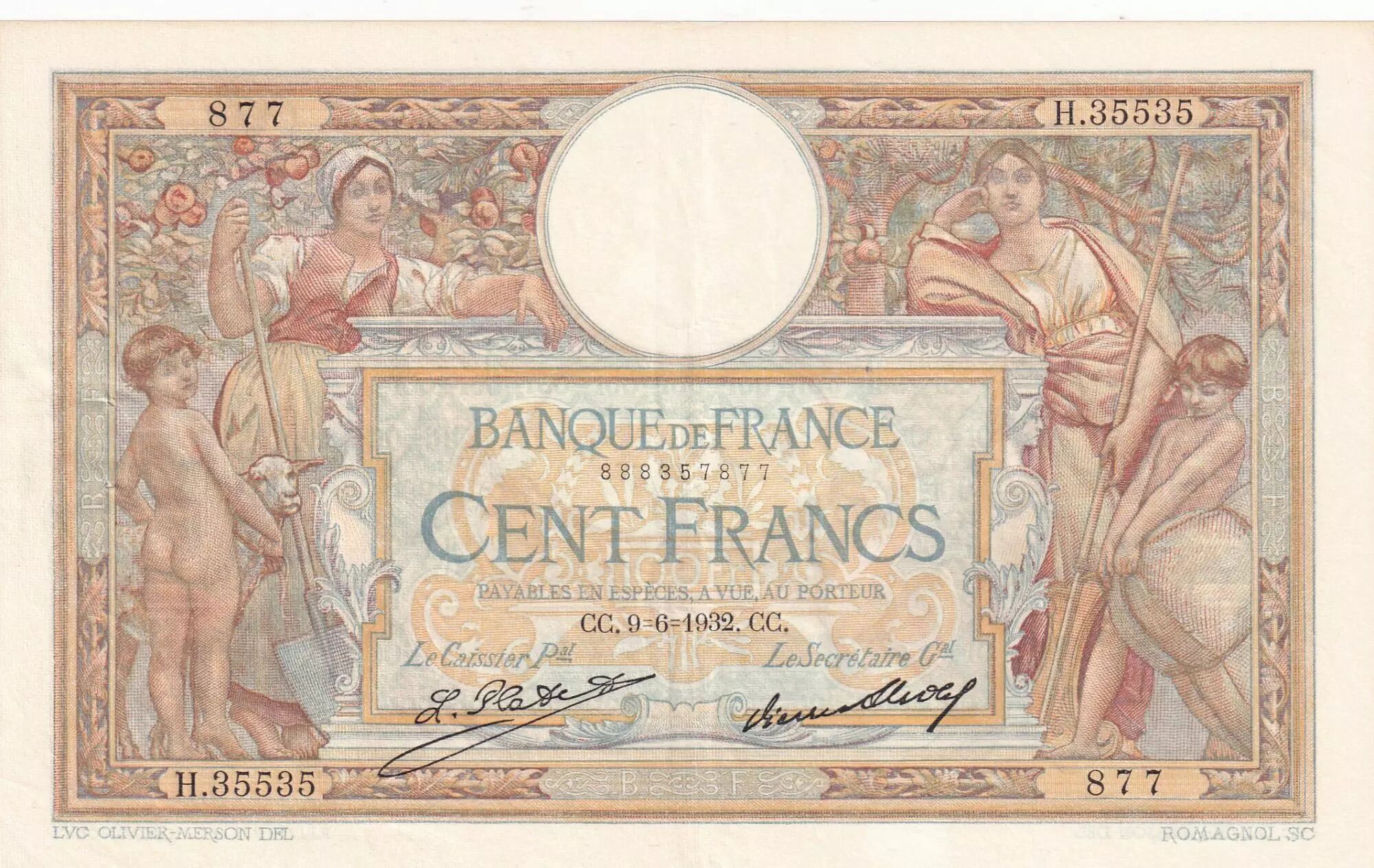 Home > > France 100 Francs Luc Olivier Merson - 09-06-1932 - Serial H.35535