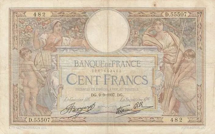 Accueil > Archivage > archivage-Billets Français > France 100 Francs - Luc Olivier Merson - 09-09-1937 - Série D.55507