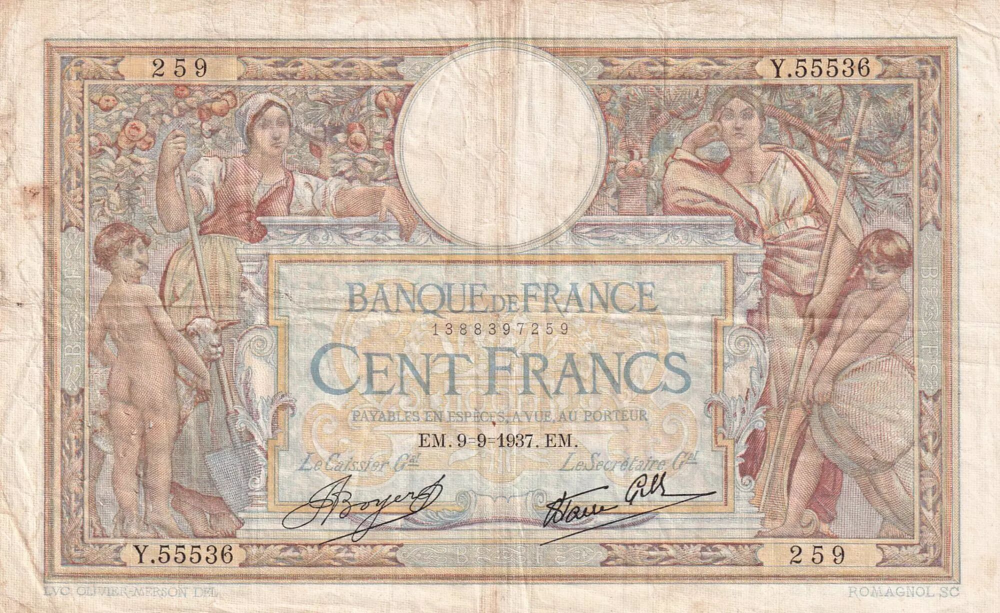 Billet France 100 Francs - Luc Olivier Merson - 09-09-1937 - Série Y.55536