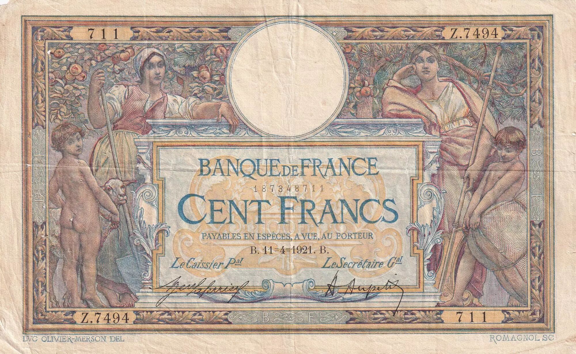 Billet France 100 Francs Luc Olivier Merson - 11-04-1921 - Série Z.7494