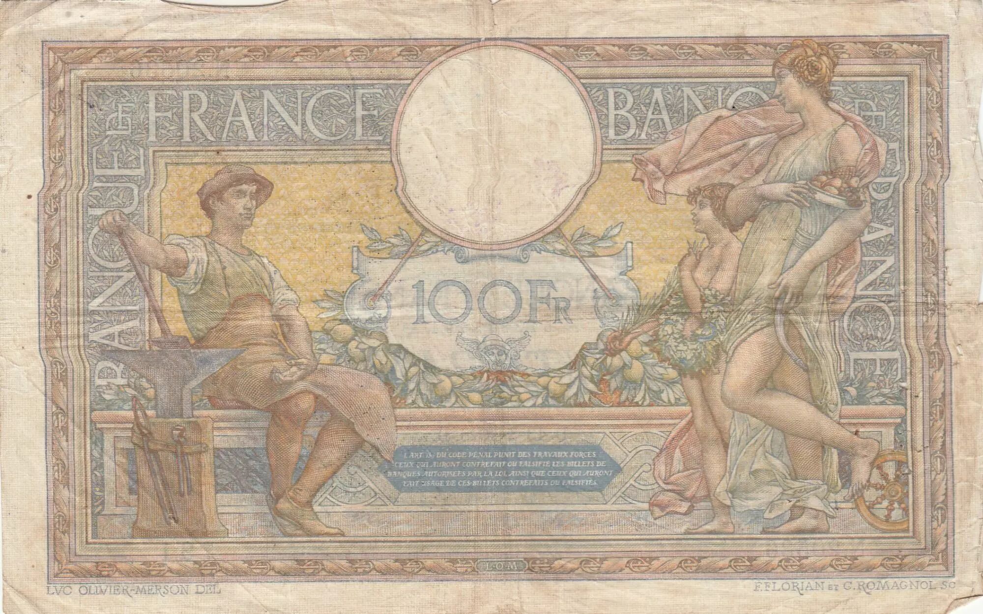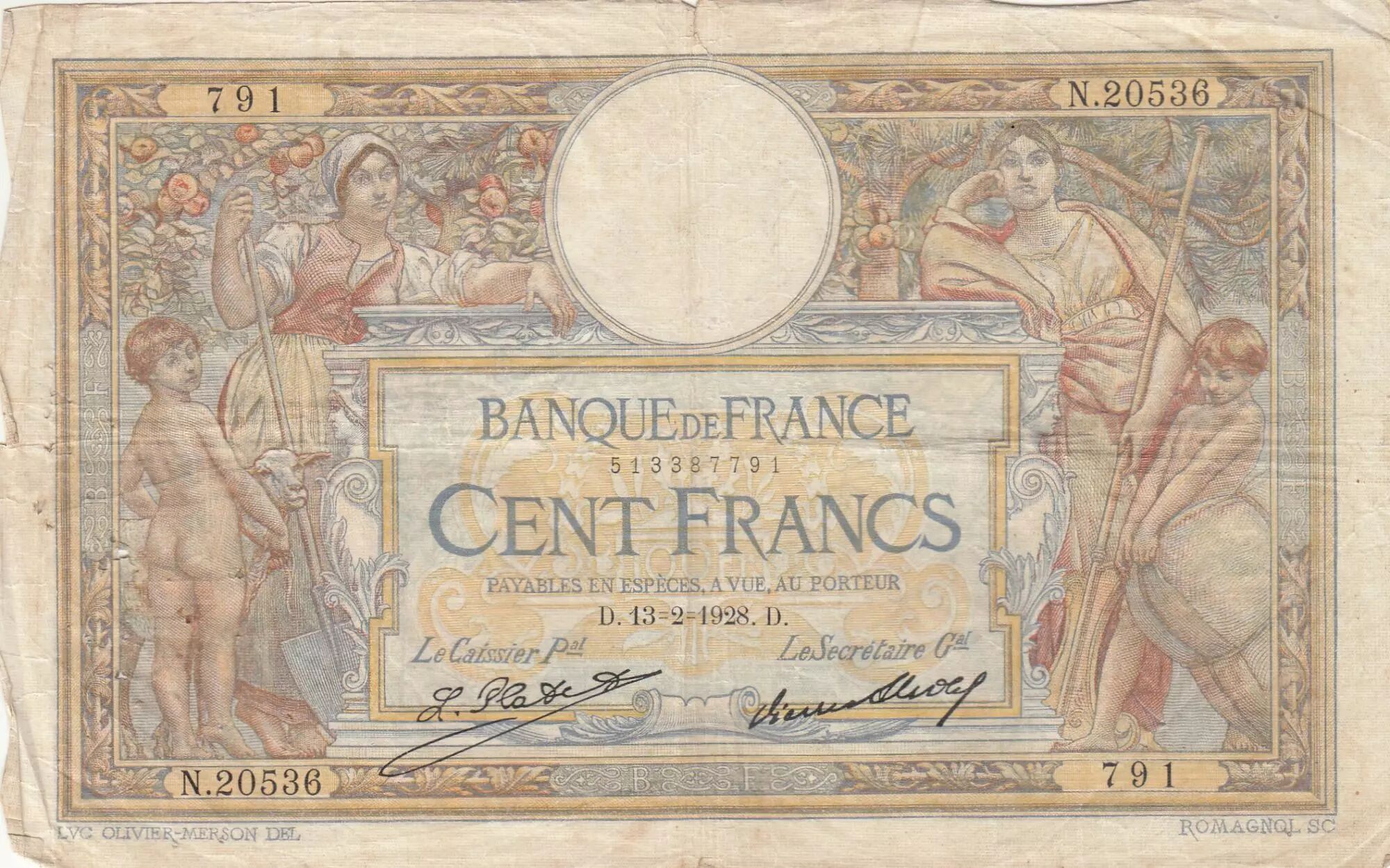 Accueil > Archivage > archivage-Billets Français > France 100 Francs - Luc Olivier Merson - 13-02-1928 - Série N.20536