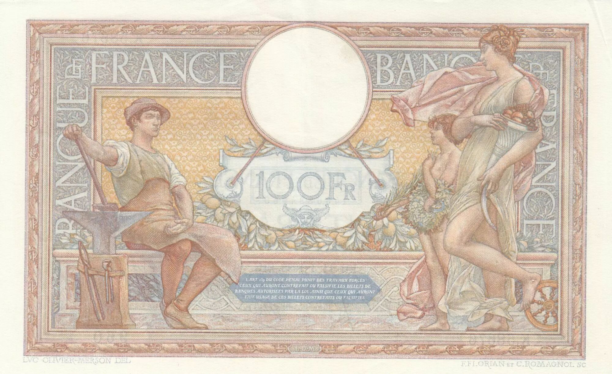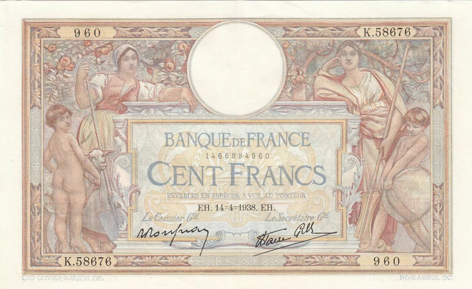 Home > > France 100 Francs - Luc Olivier Merson - 14-04-1938 - Serial K.58676