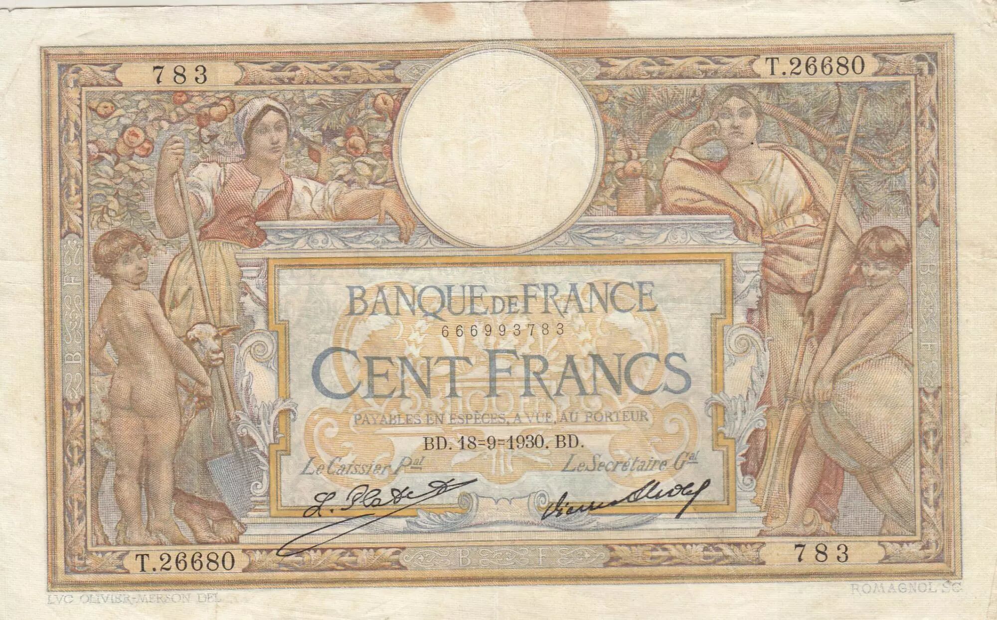 Banknote France 100 Francs - Luc Olivier Merson - 18-09-1930 - Serial T.26680