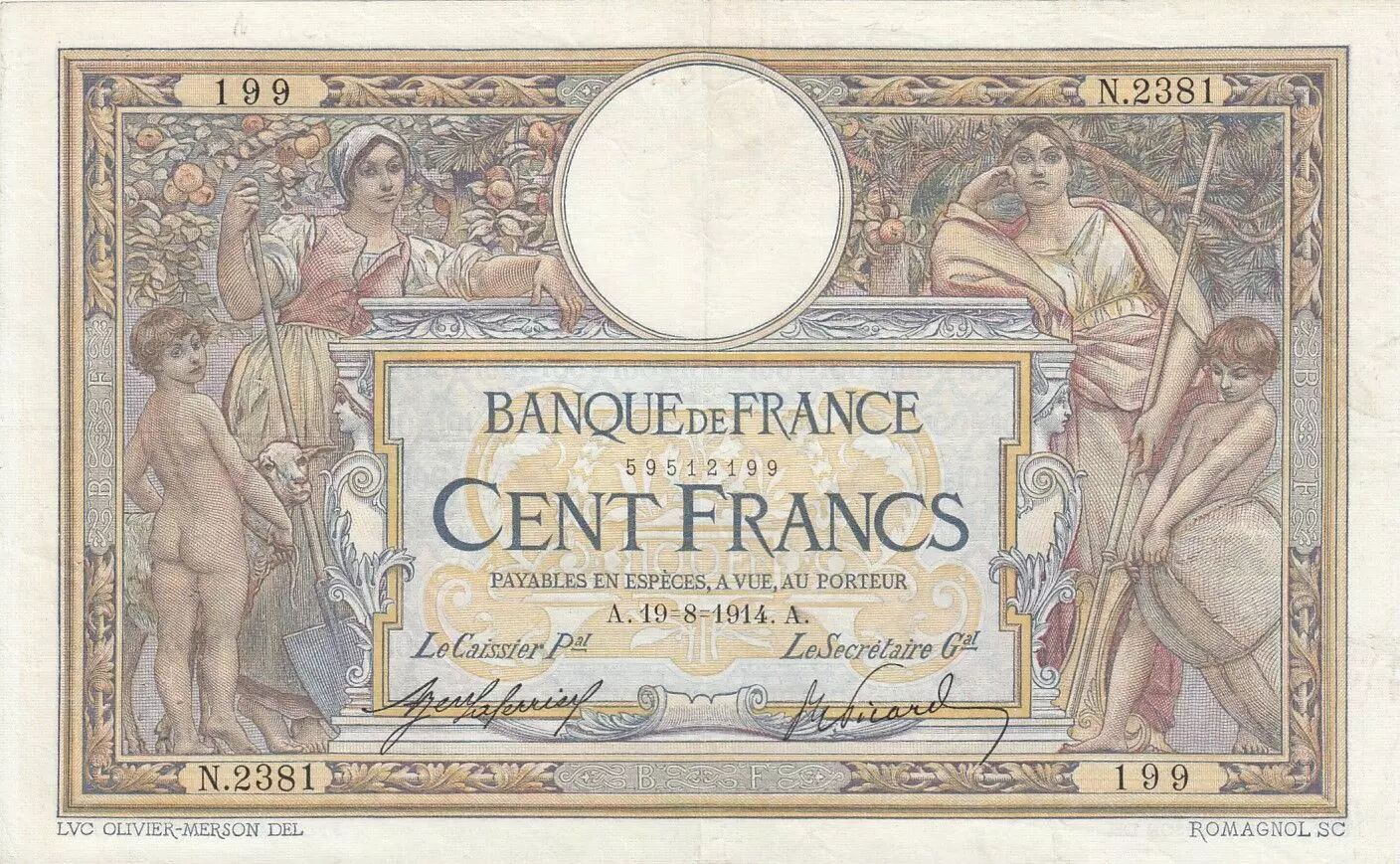 Billet France 100 Francs Luc Olivier Merson - 19-08-1914 - Série N.2381