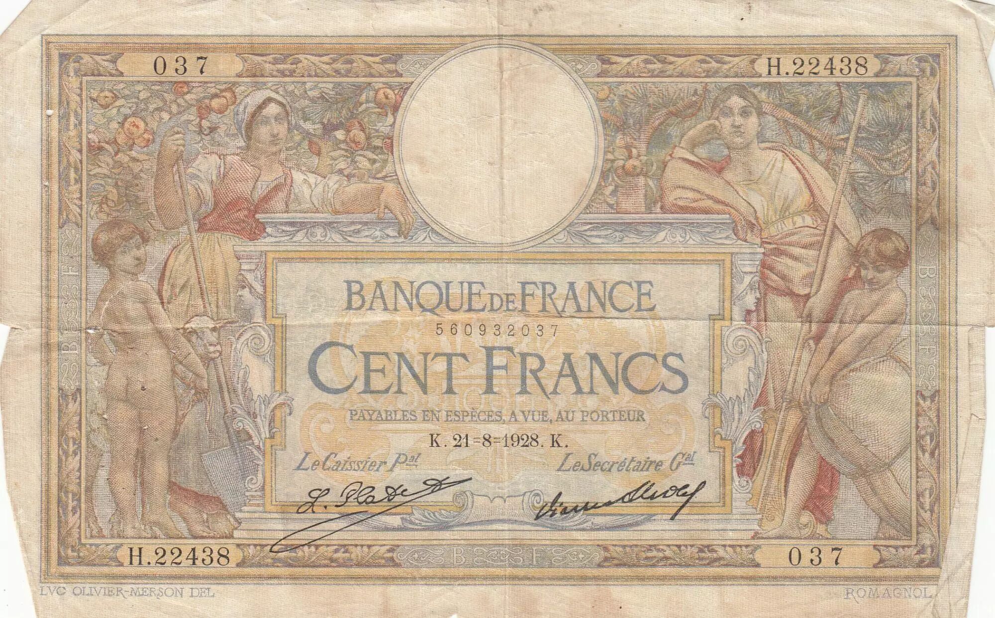 Accueil > Archivage > archivage-Billets Français > France 100 Francs - Luc Olivier Merson - 21-08-1928 - Série H.22438