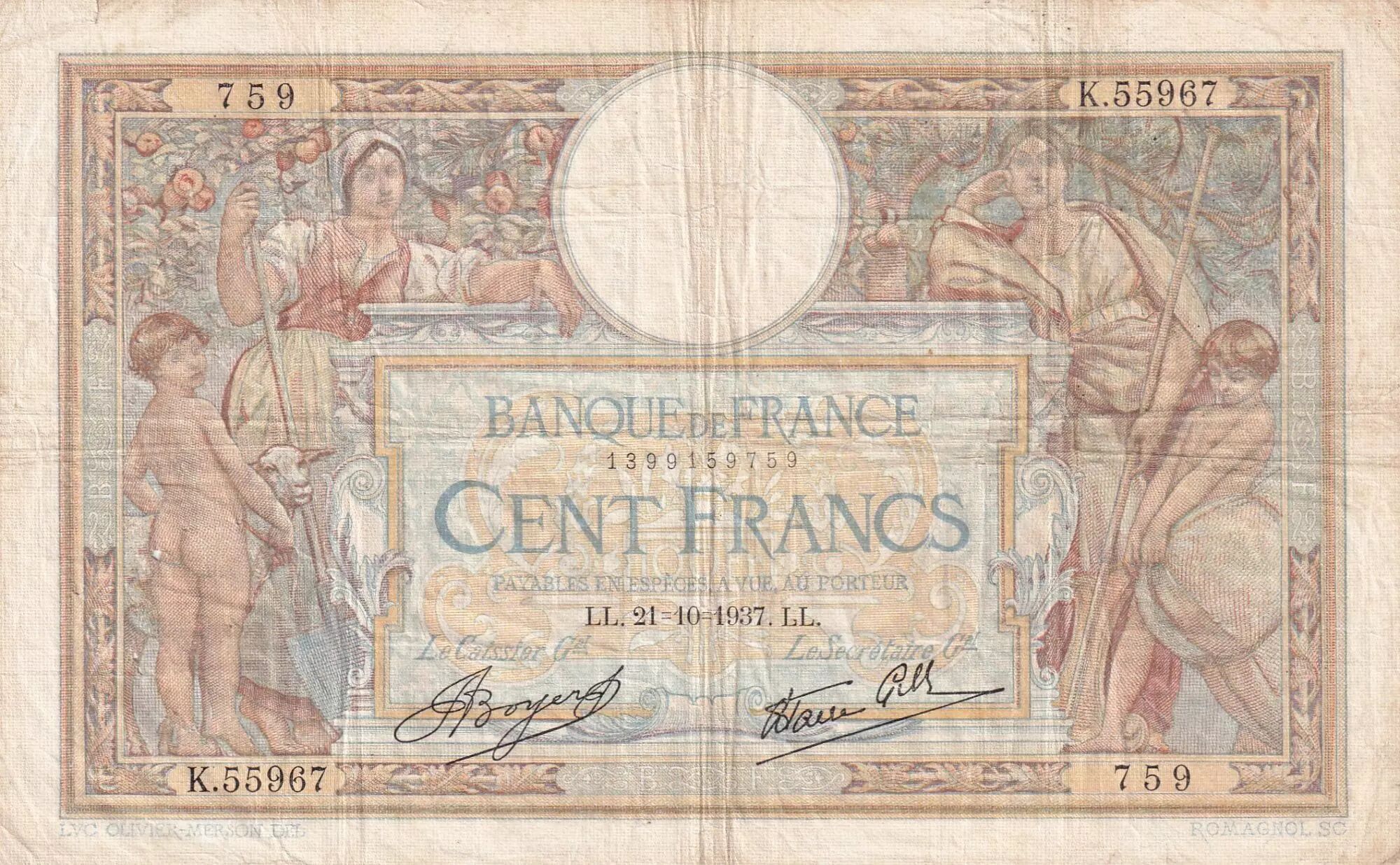 Billet France 100 Francs - Luc Olivier Merson - 21-10-1937 - Série K.55967