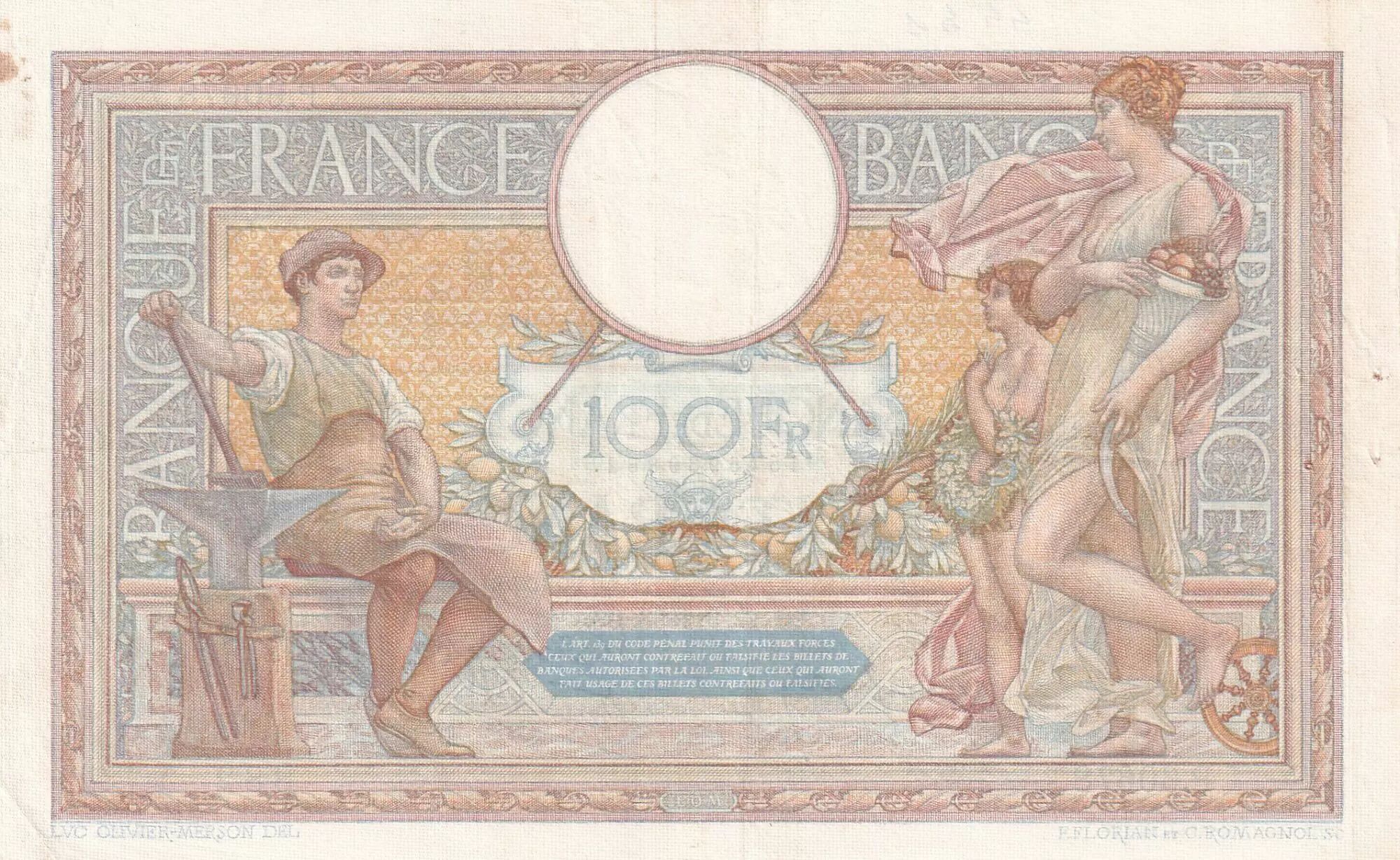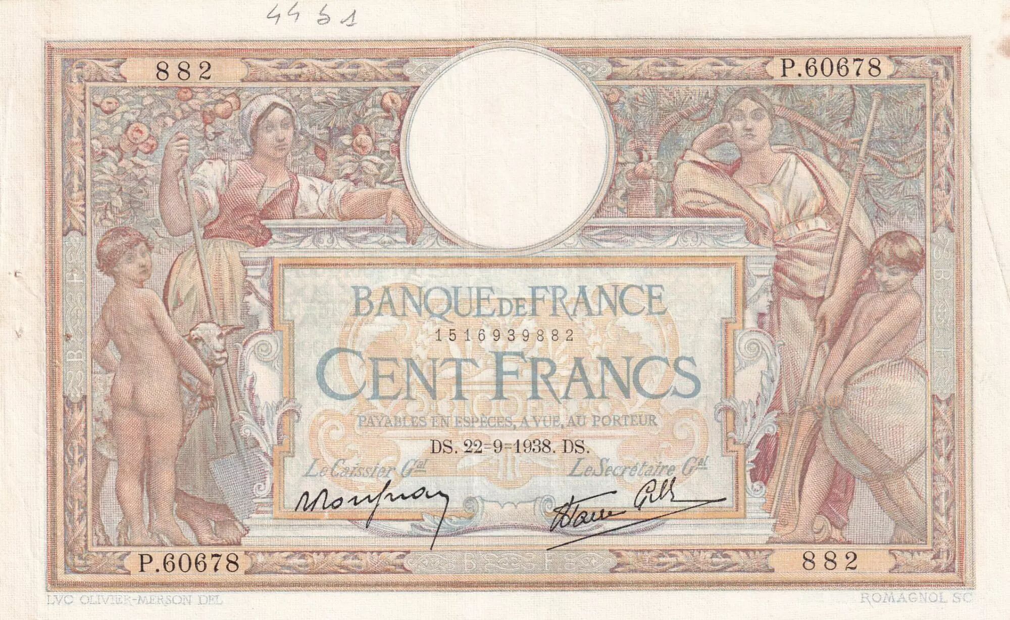 Banknote France 100 Francs Luc Olivier Merson - 22-09-1938 - Serial P.60678