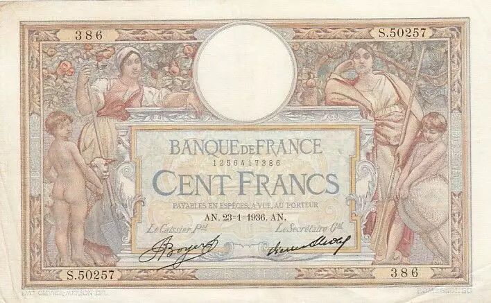 Accueil > Archivage > archivage-Billets Français > France 100 Francs - Luc Olivier Merson - 23-01-1936 - Série S.50257