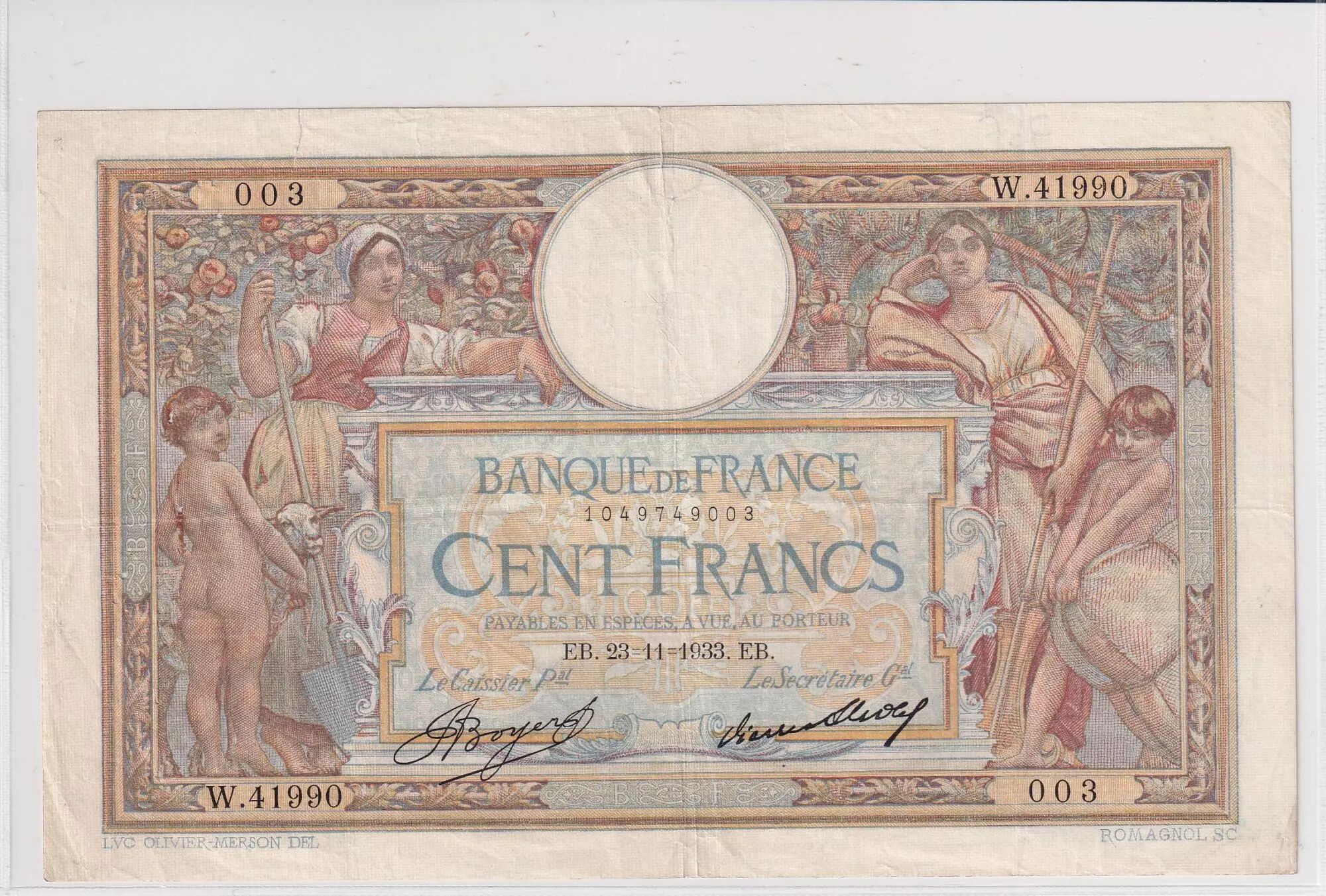 plis, salissures, épinglages, billet fragile avec des tâches, quelques coupures