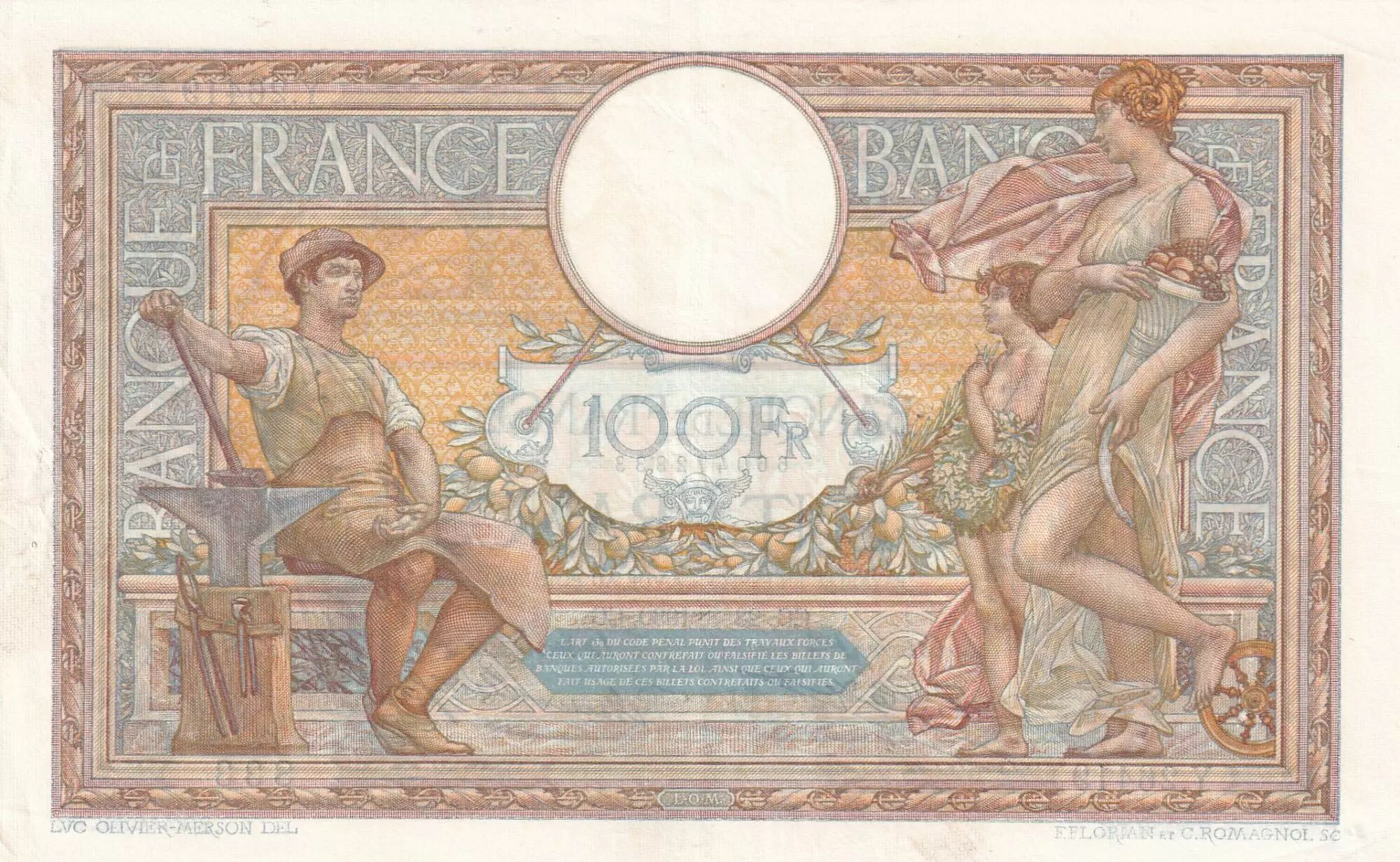 Accueil > Archivage > archivage-Billets Français > France 100 Francs Luc Olivier Merson - 28-01-1930 - Série Y.26419