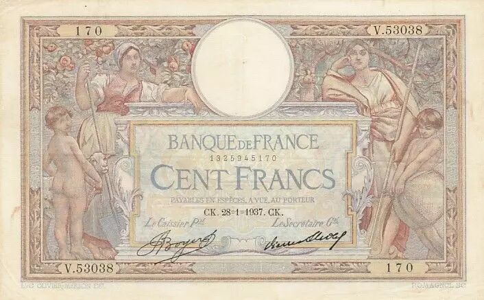 Billet France 100 Francs - Luc Olivier Merson - 28-01-1937 - Série V.53038