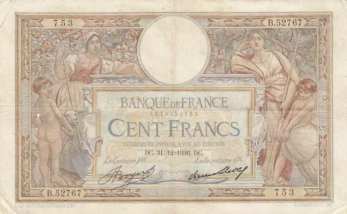 Billet France 100 francs - Luc Olivier Merson - 31-12-1936 - Série B.52767