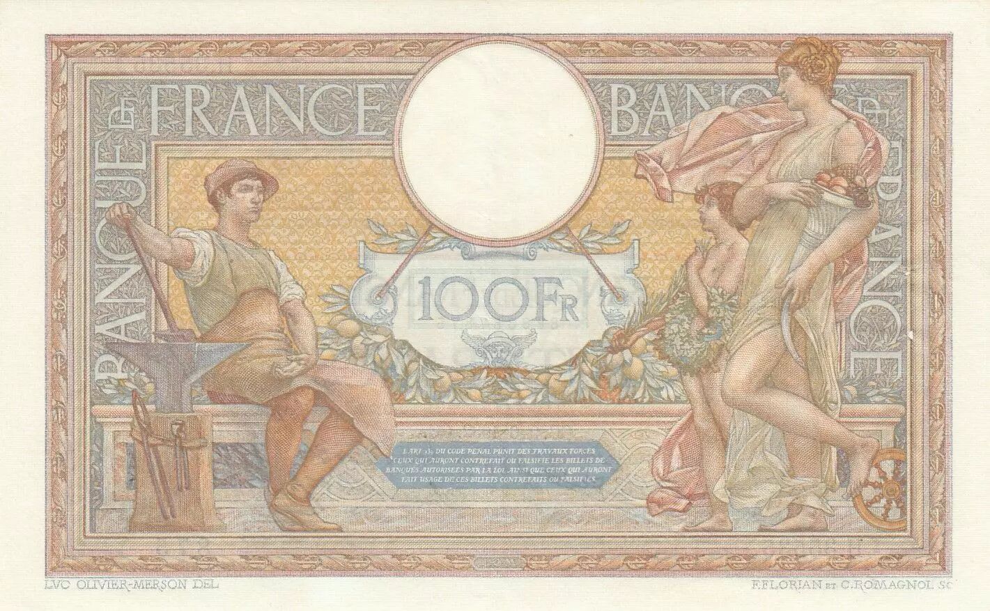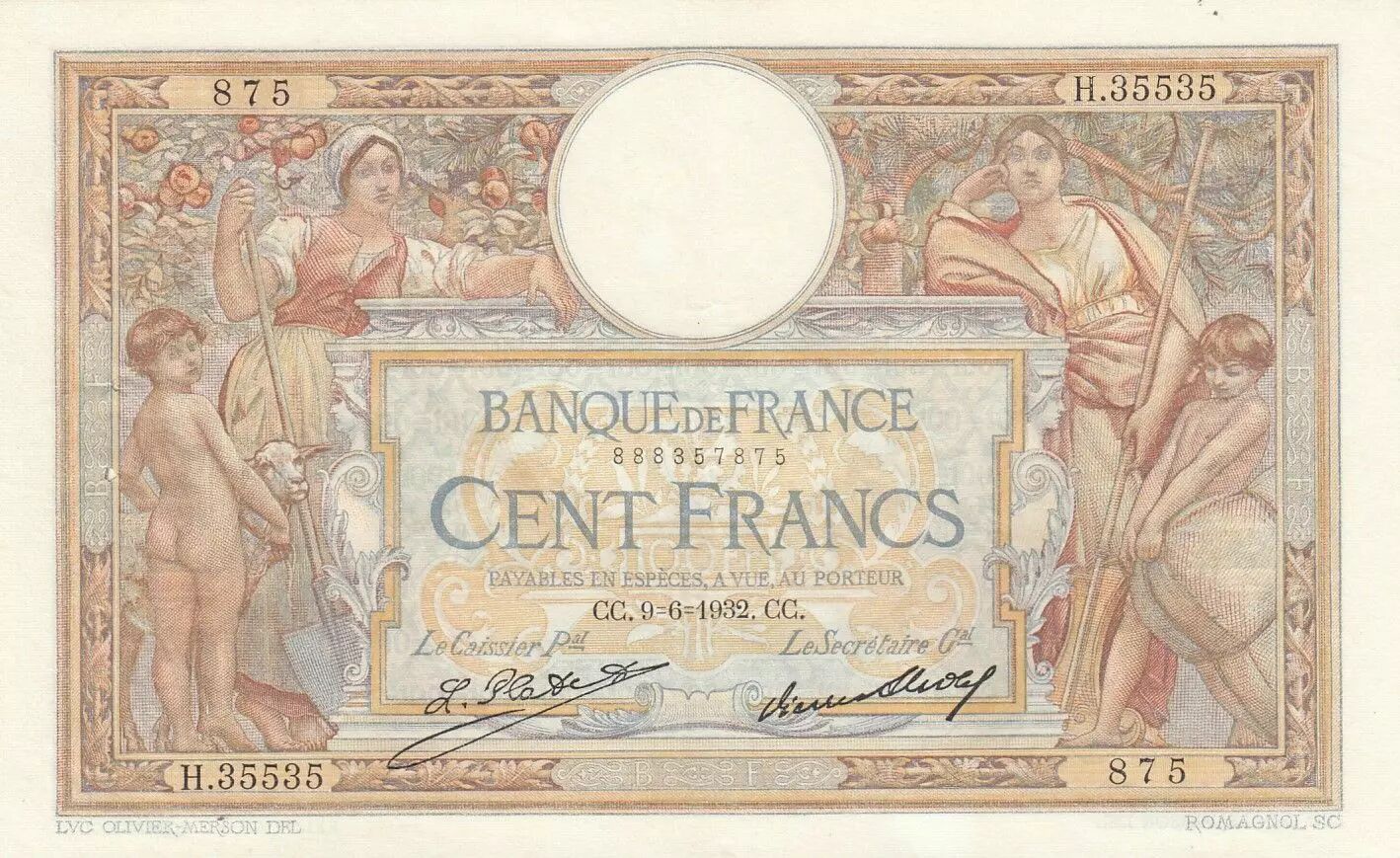 Accueil > Billets Français > Billets Banque de France > Billets 100 Francs > Luc Oliver Merson type 1906 (1908-1939) > France 100 Francs - Luc Olivier Merson - Grands cartouches - 09-06-1932 - Série H.35535