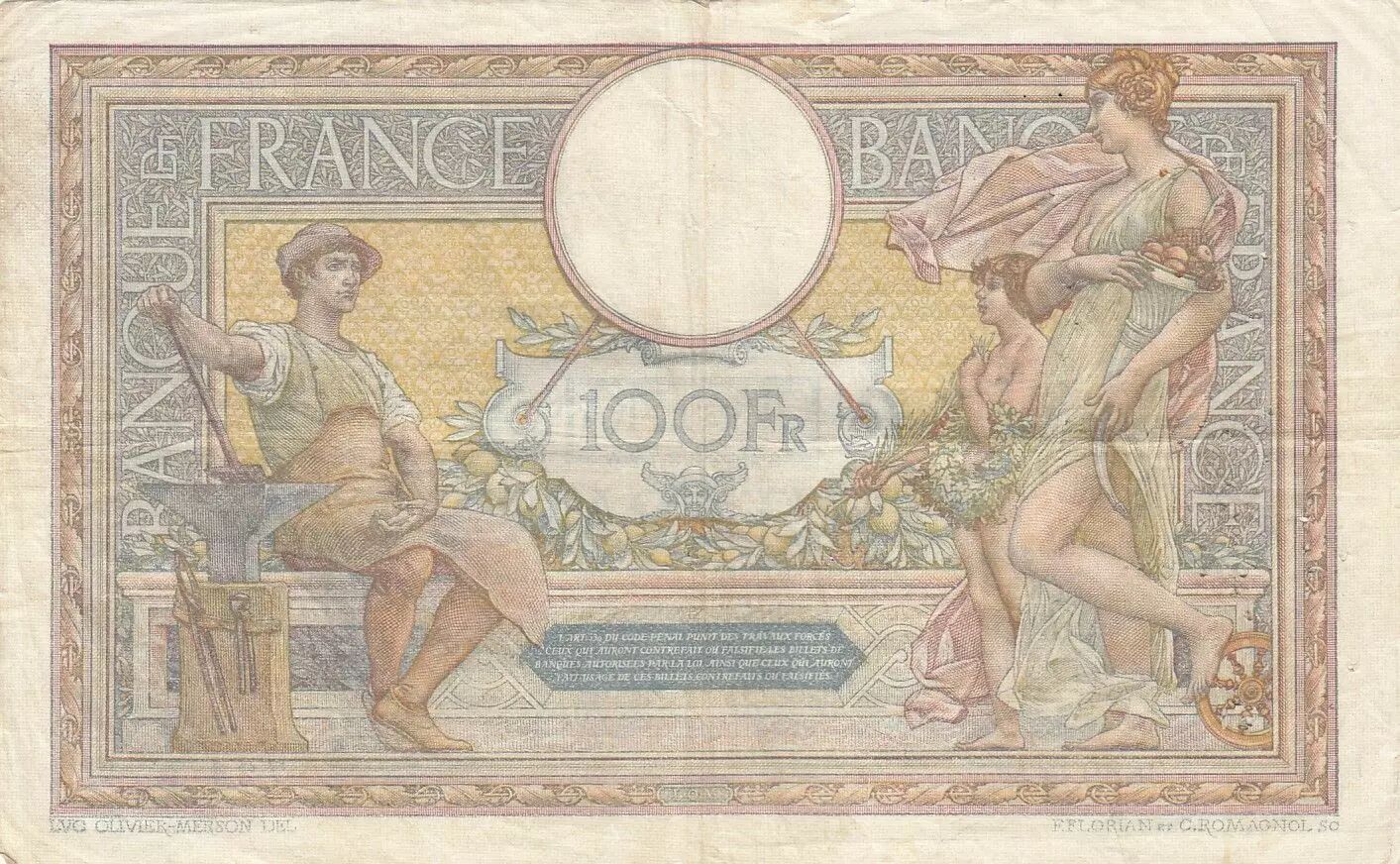 Accueil > Billets Français > Billets Banque de France > Billets 100 Francs > Luc Oliver Merson type 1906 (1908-1939) > France 100 Francs Luc Olivier Merson - sans LOM - 07-09-1923 - Série J.9680