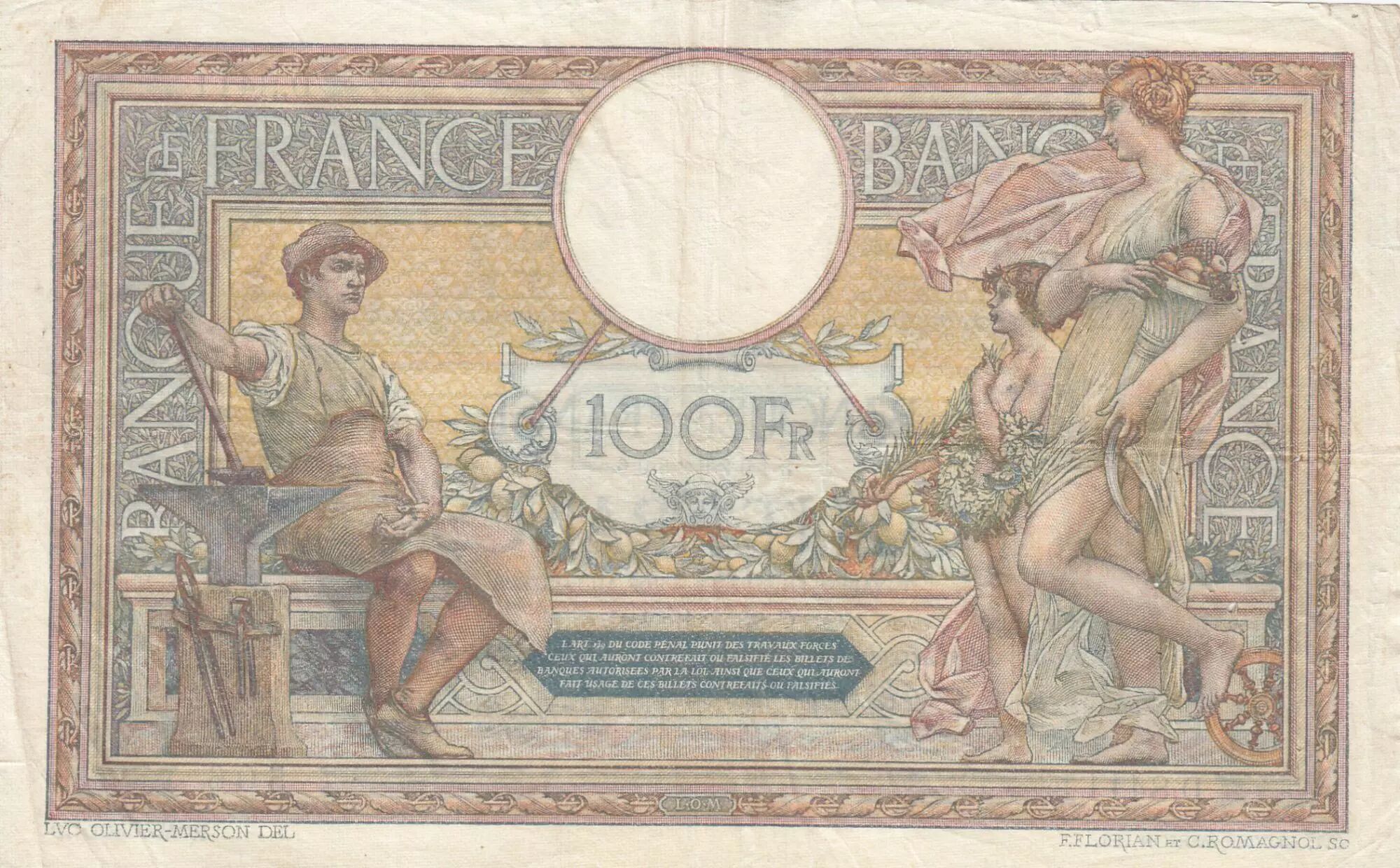 Accueil > Archivage > France 100 Francs Luc Olivier Merson - sans LOM - 23-08-1922 Série D.8411- TTB