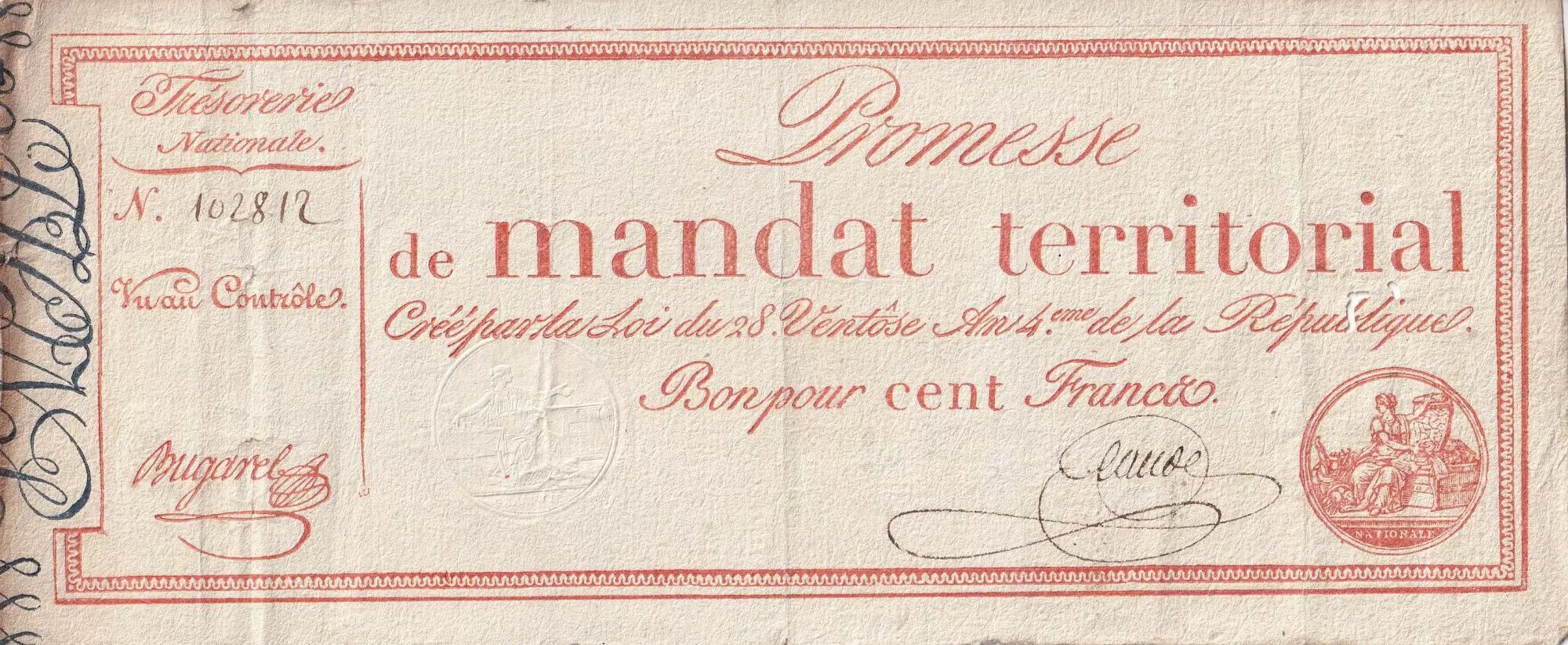 Billet France 100 Francs - Mandat Territorial - 1796 - Sans Série - L.197