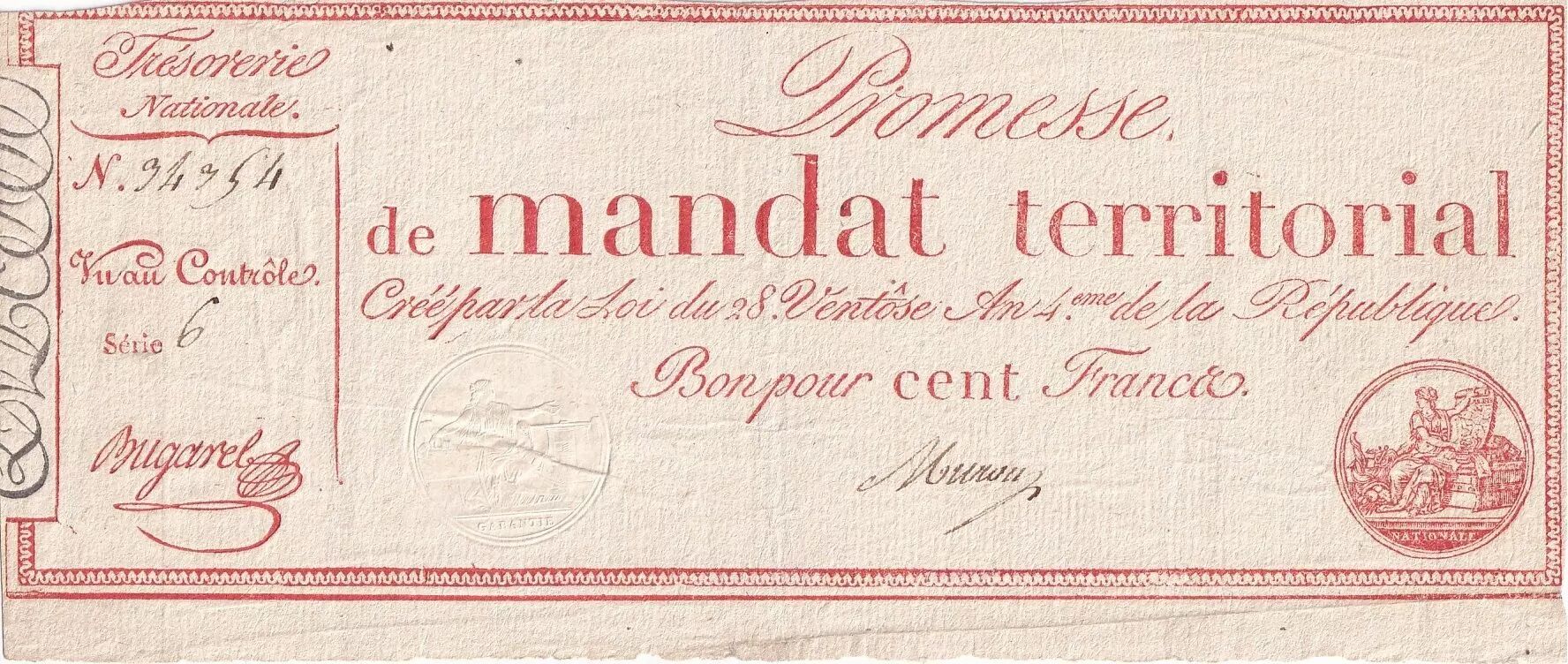 Billet France 100 Francs - Mandat Territorial - 1796 - Série 6 - L.197