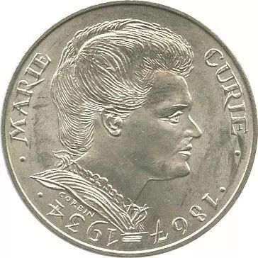 The coin pays tribute to Marie Curie, a Polish-born physicist and chemist who became a naturalized French citizen. She is famous for her work on radioactivity and is the first woman to have received the Nobel Prize, and the only person to have received Nobel Prizes in two different scientific disciplines.