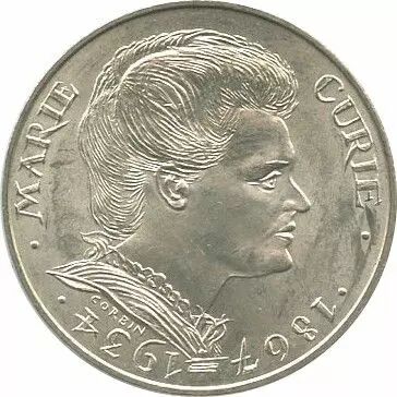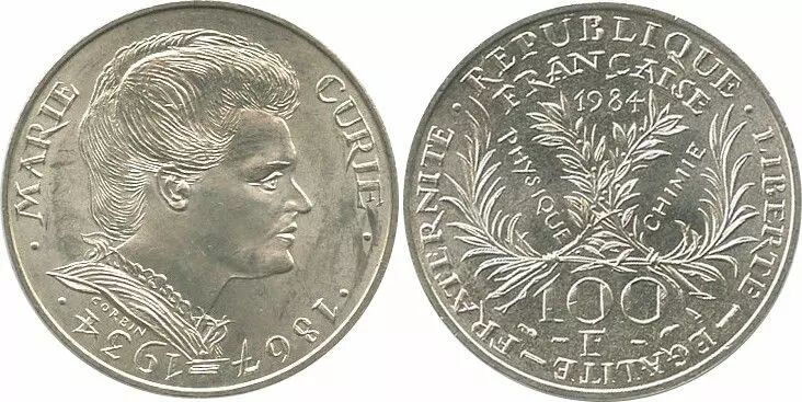 This 1984 Marie Curie 100 Francs coin is a numismatic testament to France's recognition of this exceptional scientist. It represents a collector's item for numismatists and enthusiasts of scientific history.