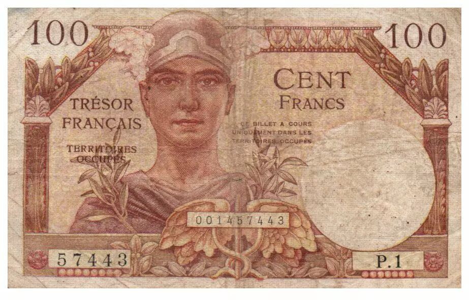 Home > > France 100 Francs Mercury, French Treasury - 1947 - Serial P.1 - F