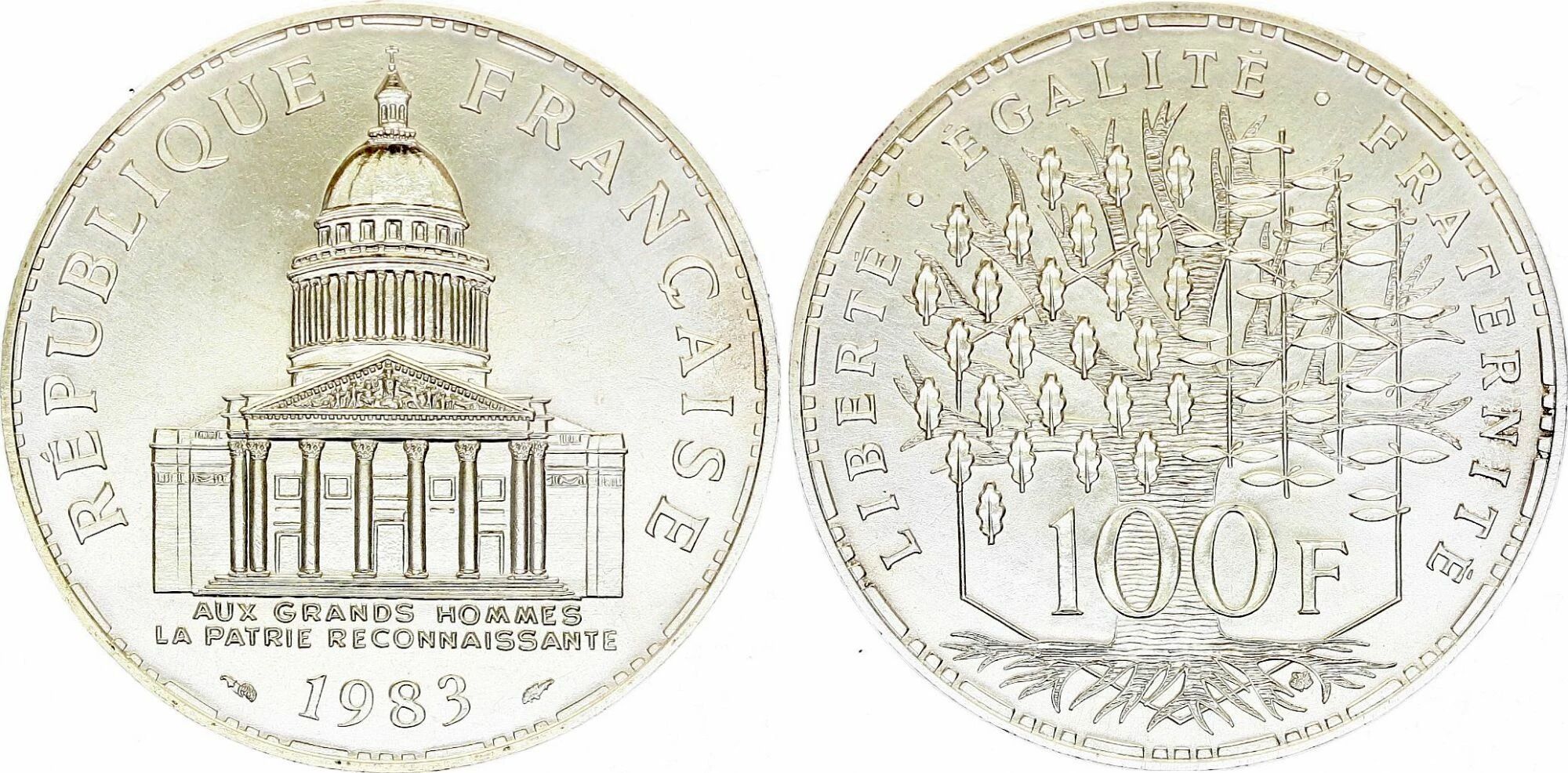 La pièce de 100 francs ?Panthéon? millésimée 1983 s?inscrit dans la grande série des monnaies françaises en argent introduite au début des années 1980 sous la Cinquième République. Elle reprend un type inauguré en 1982, destiné à devenir l?un des plus emblématiques du franc moderne, à la fois par sa longévité et par sa forte charge symbolique.