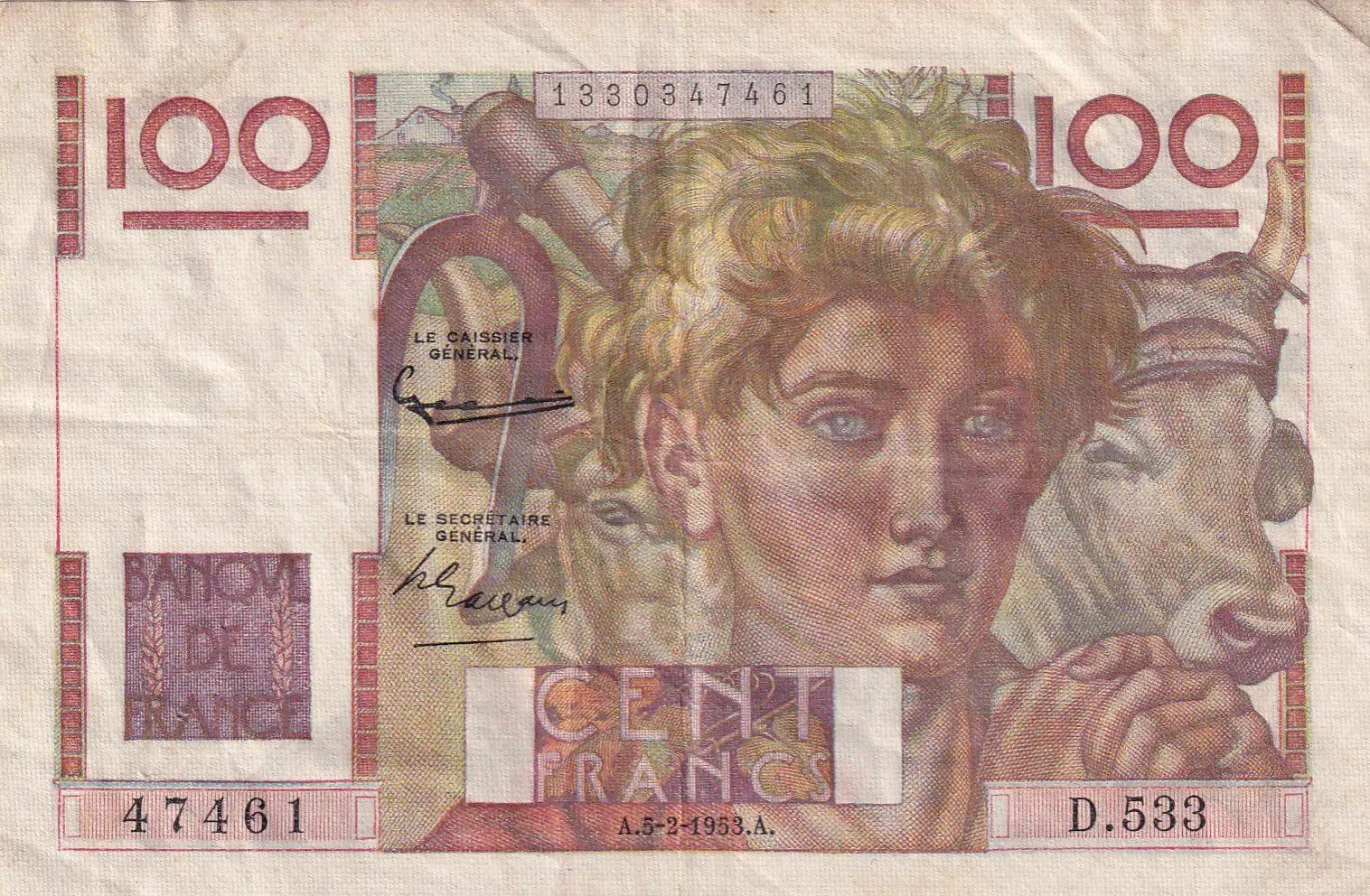 Accueil > Archivage > France 100 Francs Paysan - 05-02-1953 - Série D.533 - TTB