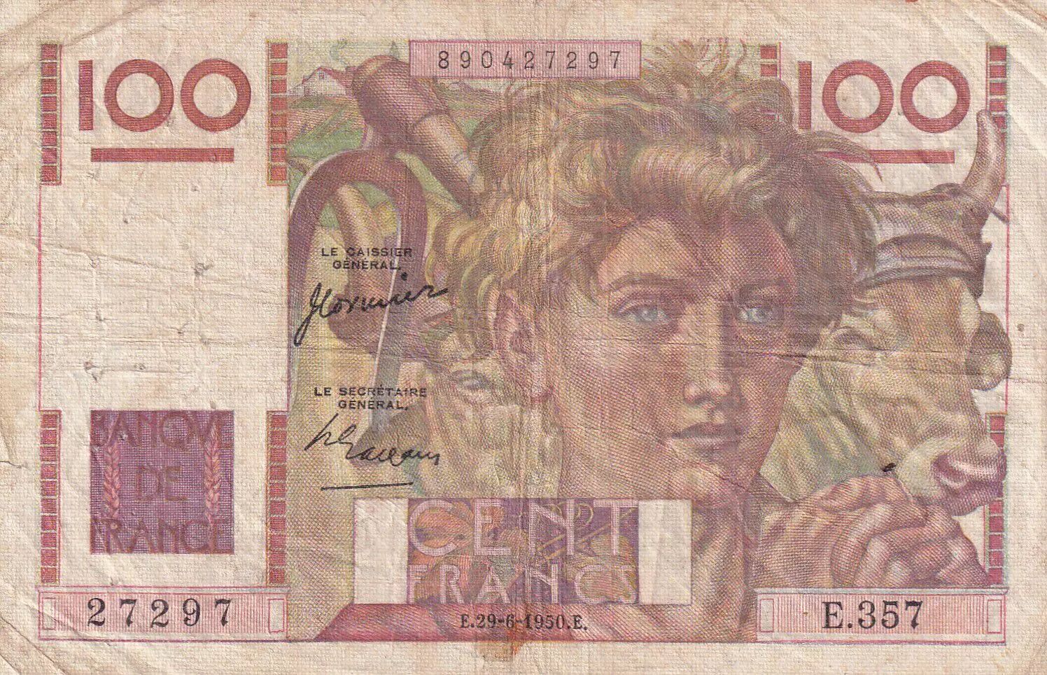 Accueil > Archivage > France 100 Francs Paysan - 29-06-1950 - Série E.357 - TB+